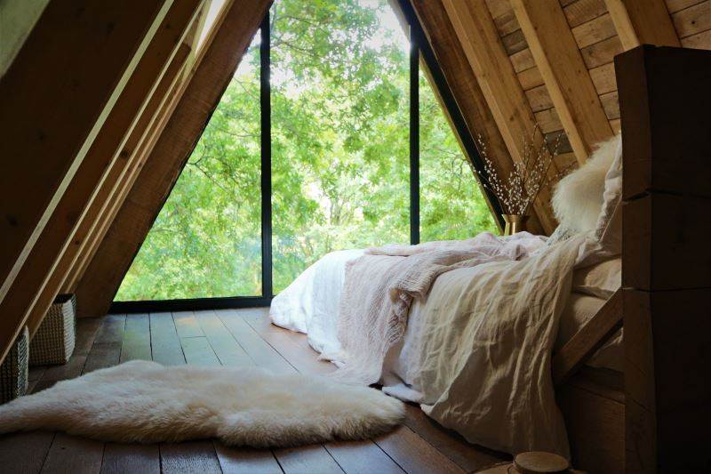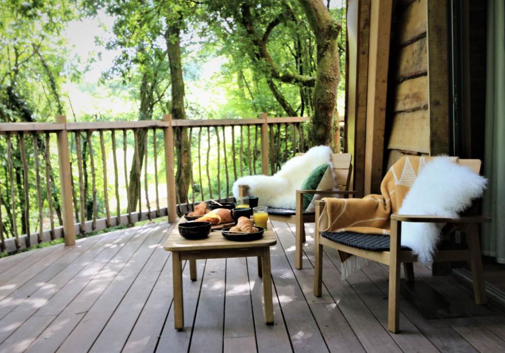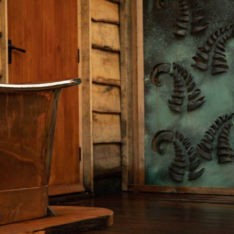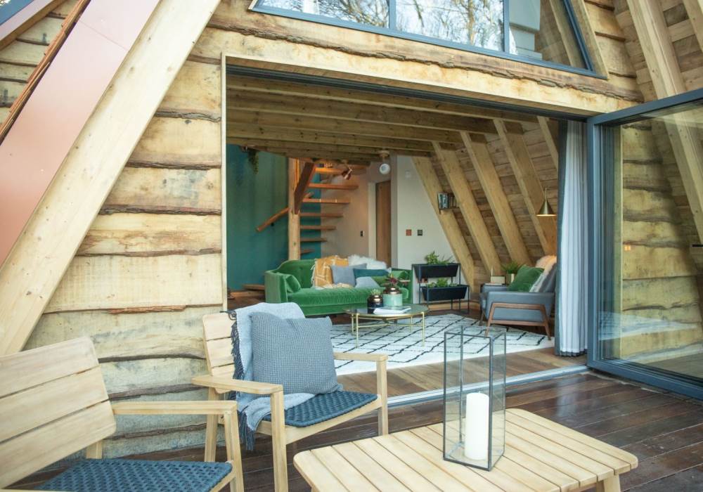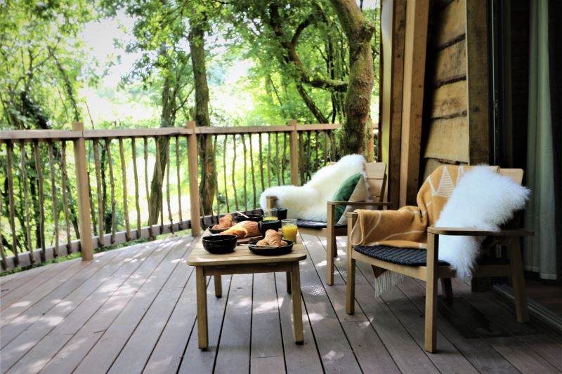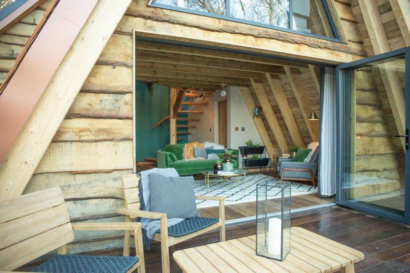 Large wraparound deck with outdoor bath and seating, sun loungers and hammock