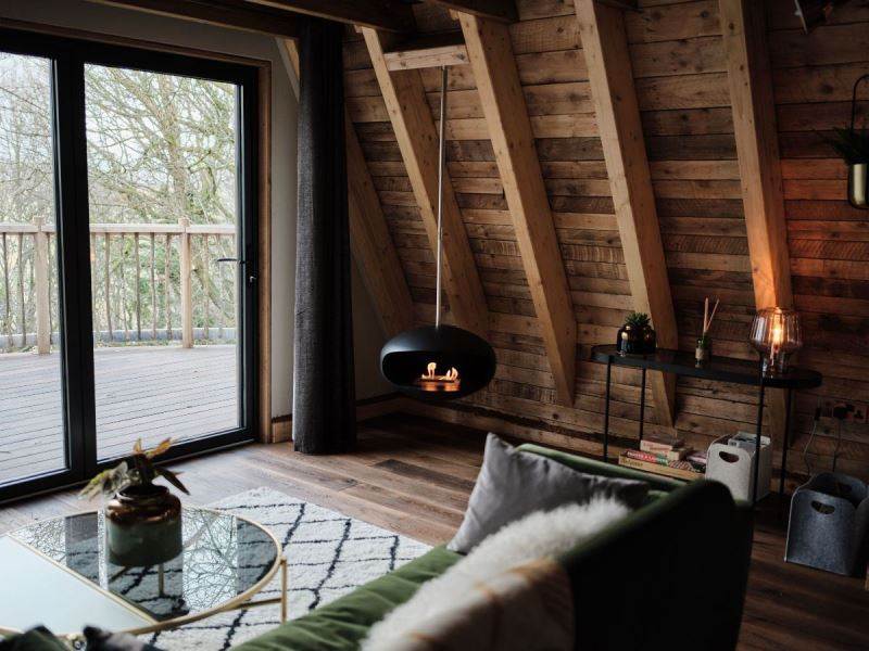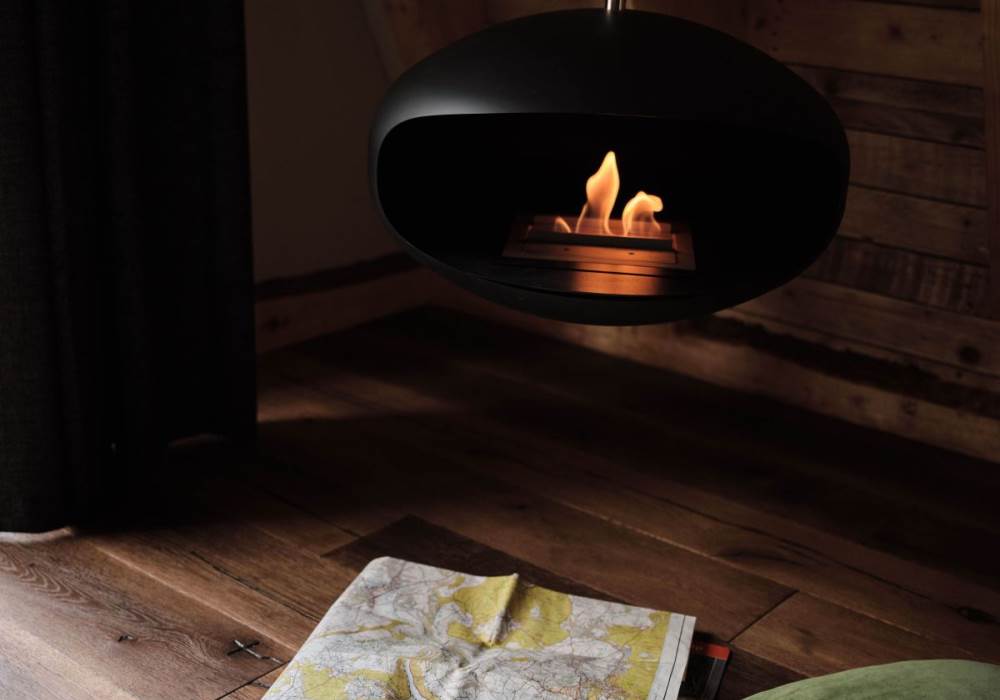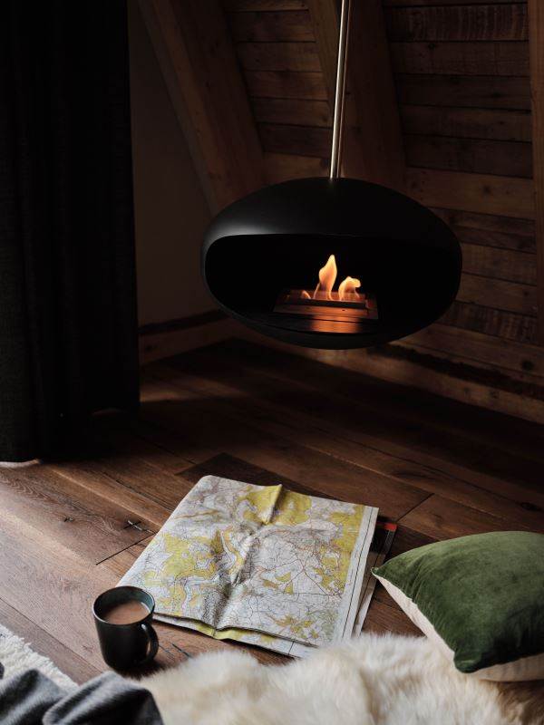Underfloor heating and a suspended bio-ethanol indoor fireplace