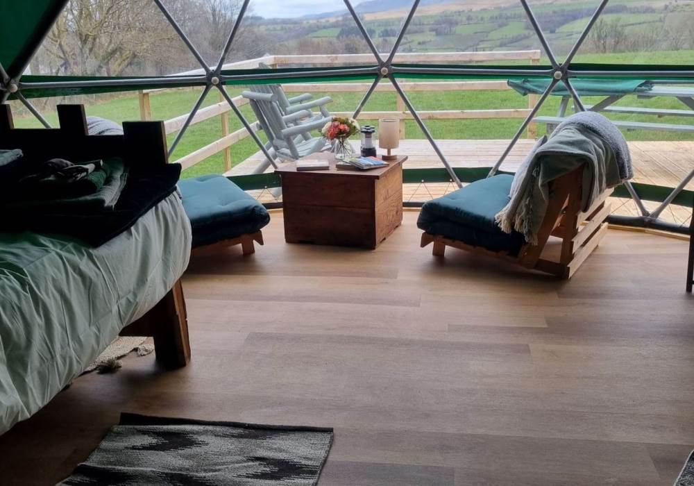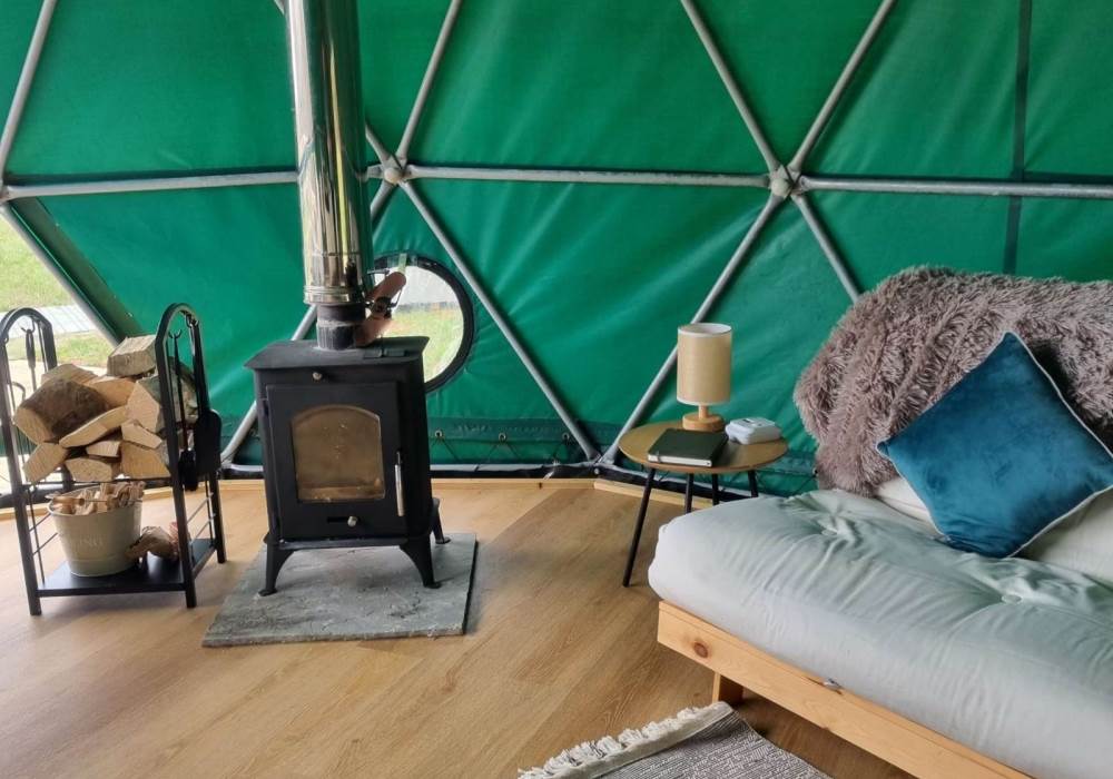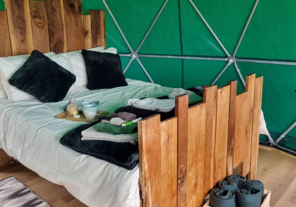 Rowan is perfect for friends, couples or families. This stunning geodome tent has a comfortable solid oak king size bed. There is also a cosy seating area that can be converted into an additional 2 single futons and 1 double futon (bring your own bedding or we can provide bedding for the futons at an additional cost).