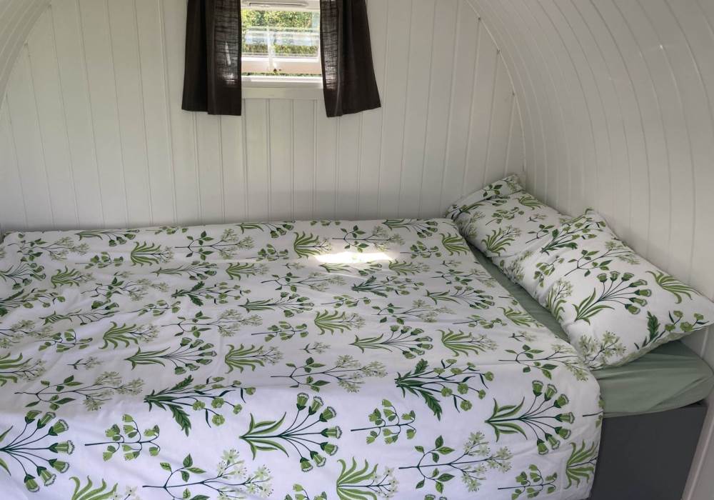 Willow pod one has a comfortable double bed with snuggly bedding included, box of warm blankets and toasty hot water bottles.