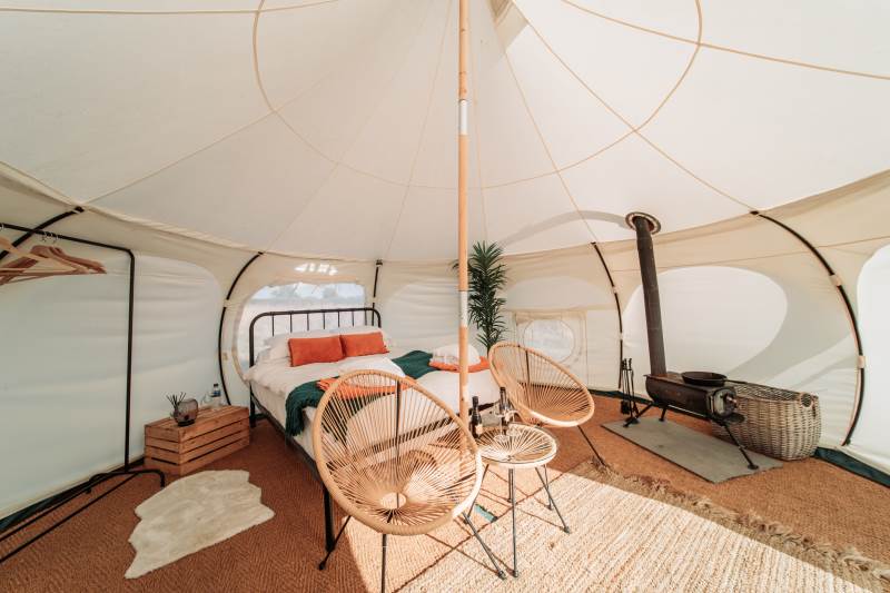 Beautiful tents - gorgeous interiors and super comfy bed. We also loved the log burner. Bathroom facilities just fab! What a great idea. Views were stunning. What’s sunset and what a starry sky!! Amazing and very peaceful. Staff very attentive and really kind. Brilliant stay. Thank you!