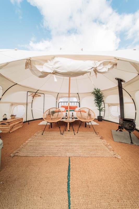 A wonderful cosy stay in the spacious and roomy lotus belle tent. Plenty privacy, great shower and toilet facilities. It was a cold windy weekend but the stove in the tent kept it really warm. A dreamy setting as well.