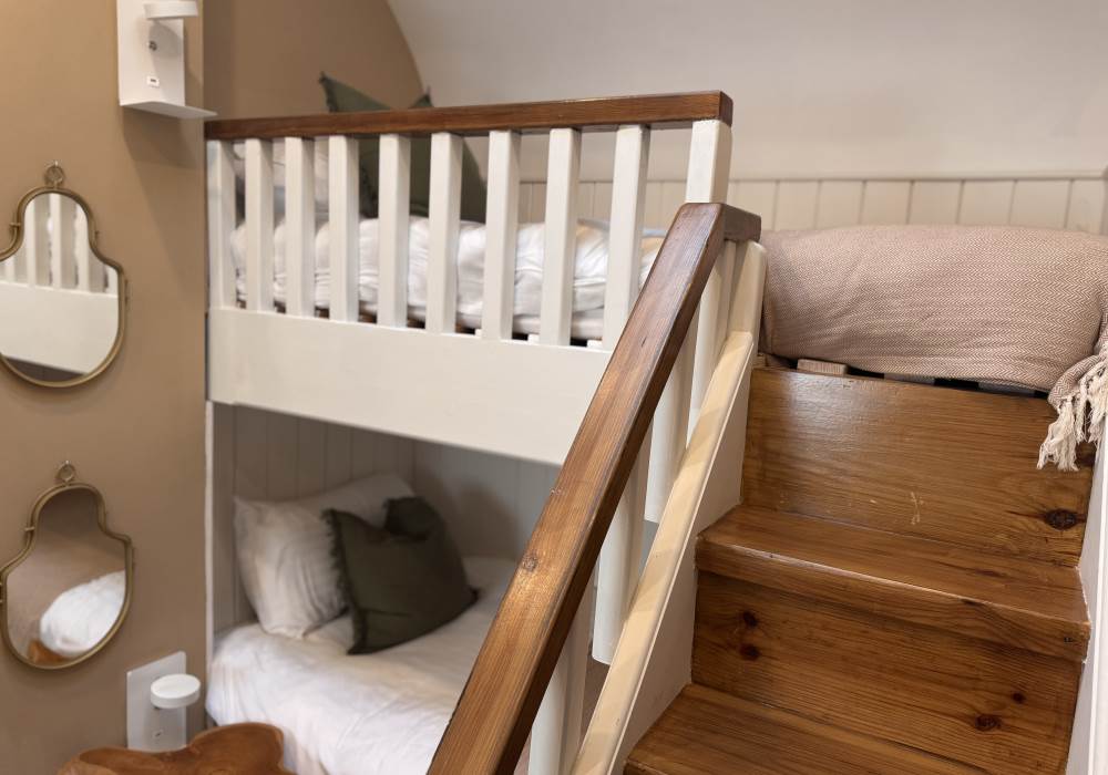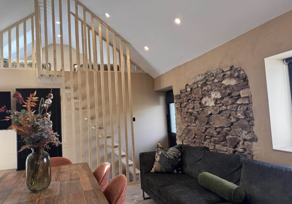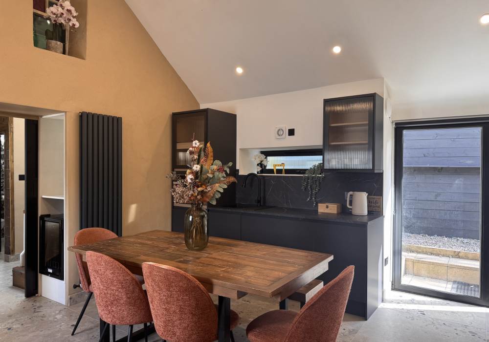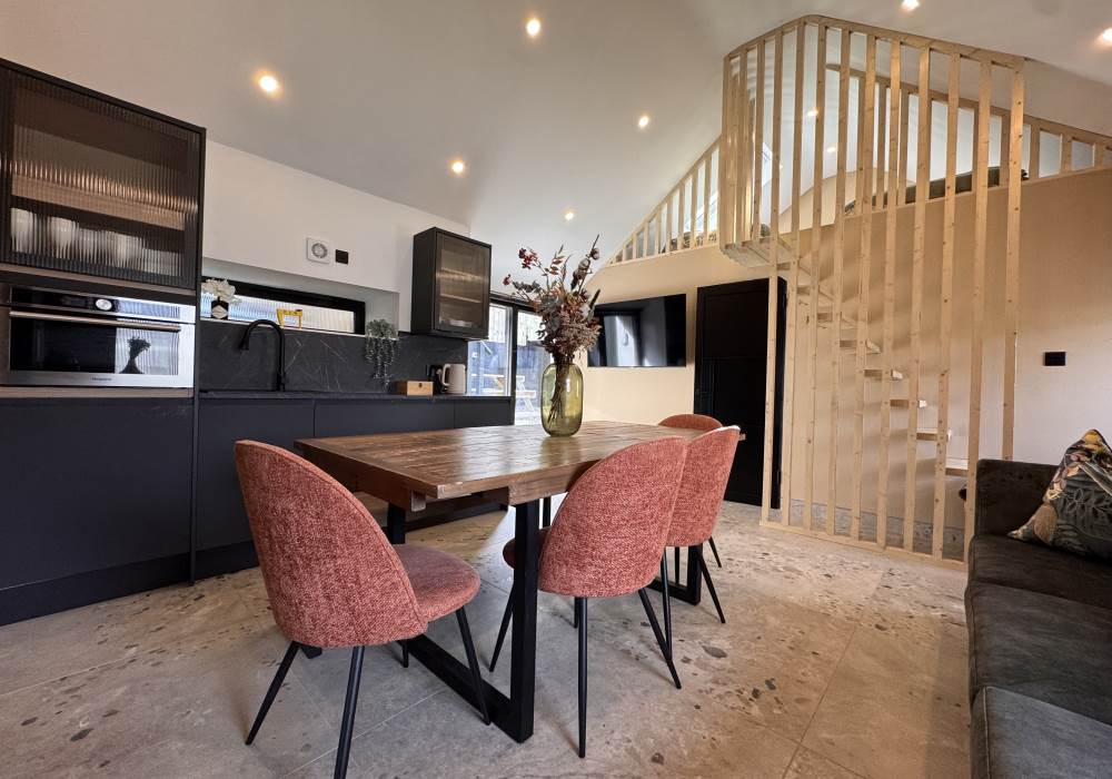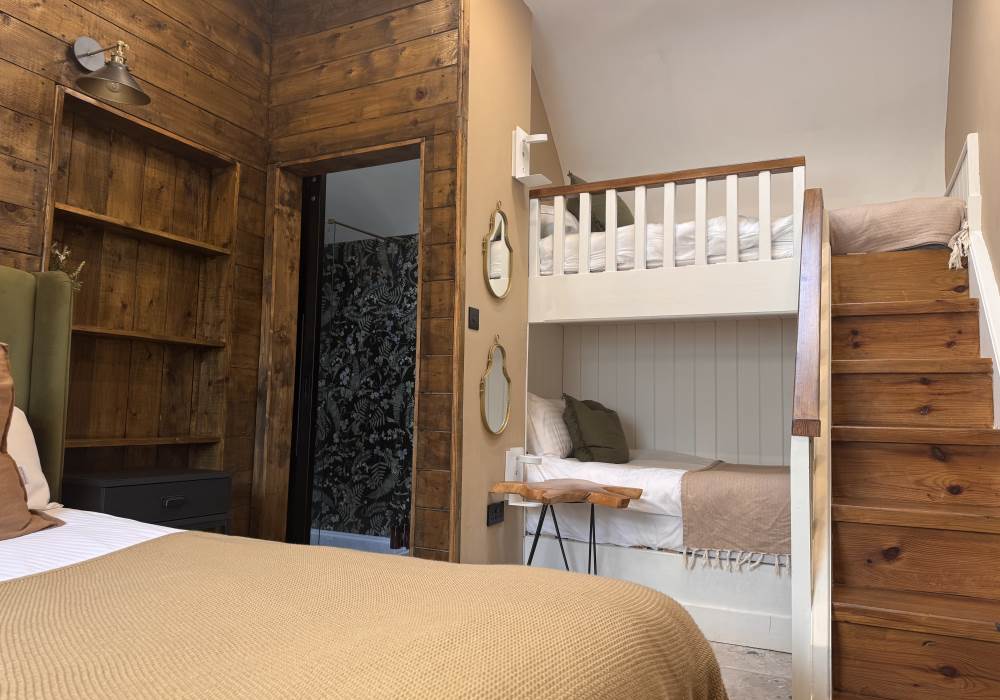 Newly renovated stables that have been converted into the most dreamy Country Escape. On ground level, we have an open plan living, dining, kitchen along with two ensuite bedrooms; One with a double bed and two singles (grown up bunk beds) and the other with a double bed. The Stables has a new balcony loft with two japanese style single beds. (Please be aware the steps are steep to these beds and not suitable for those with mobility issues). The main living area of The Stables features exposed brick, reclaimed wood dining table, plenty of seating and a well equipped kitchen area with fridge, wine fridge and combi-oven. The highlight of this property has to be the private use of a Hot Tub it its own enclosed rear garden. Hot tub is sheltered to be enjoyed in all weather.