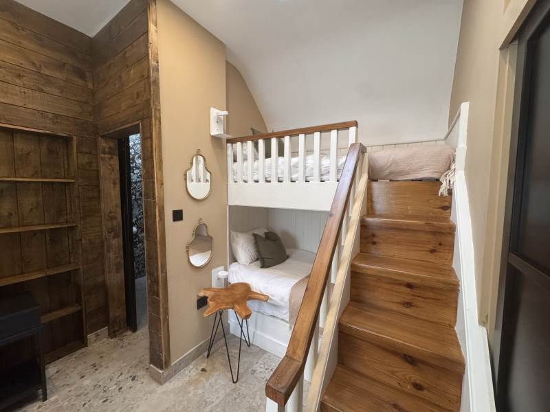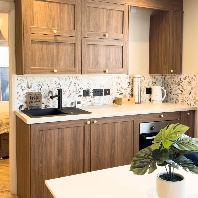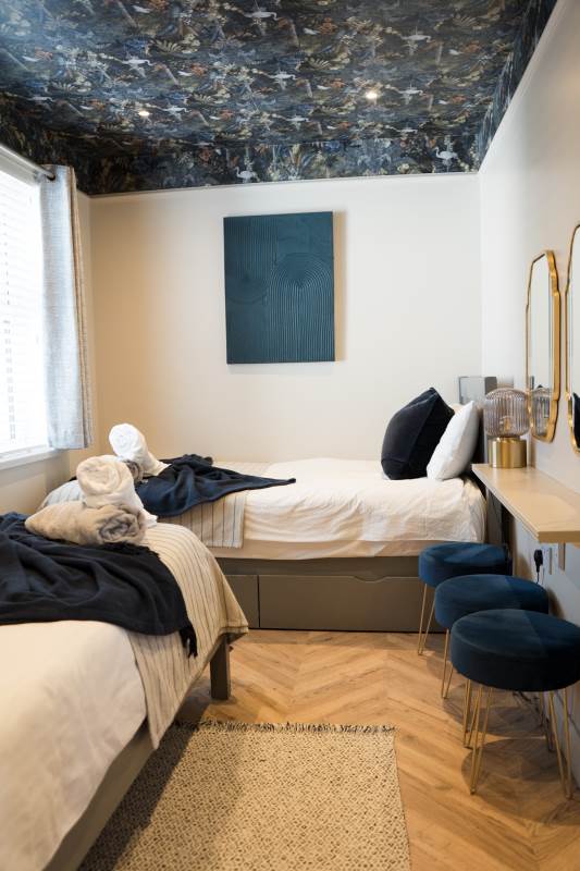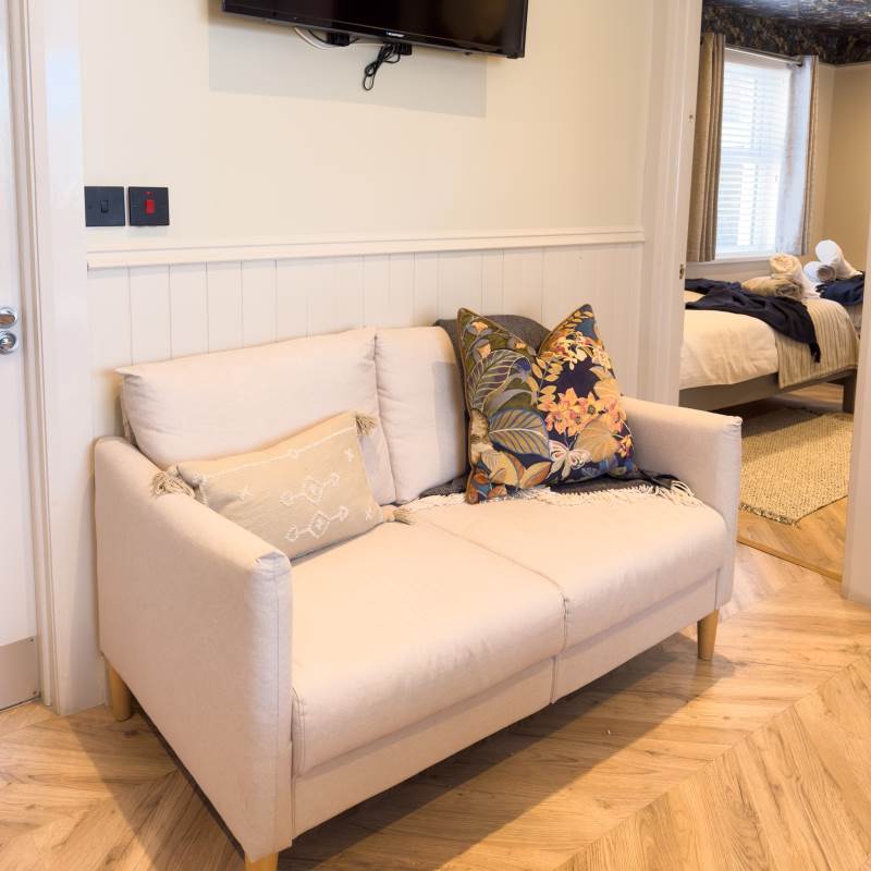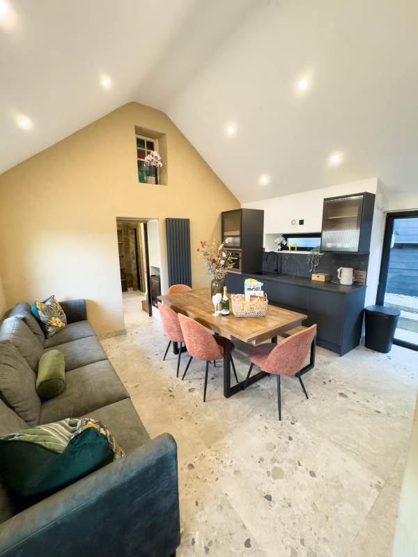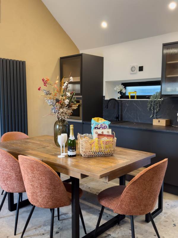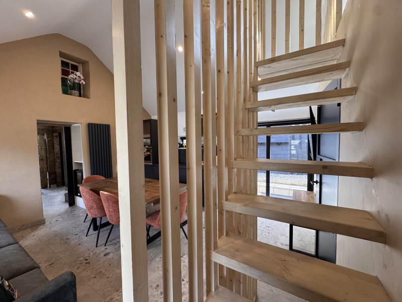 Our lodges have a king-size bed with a private hot tub, sunken into balcony.