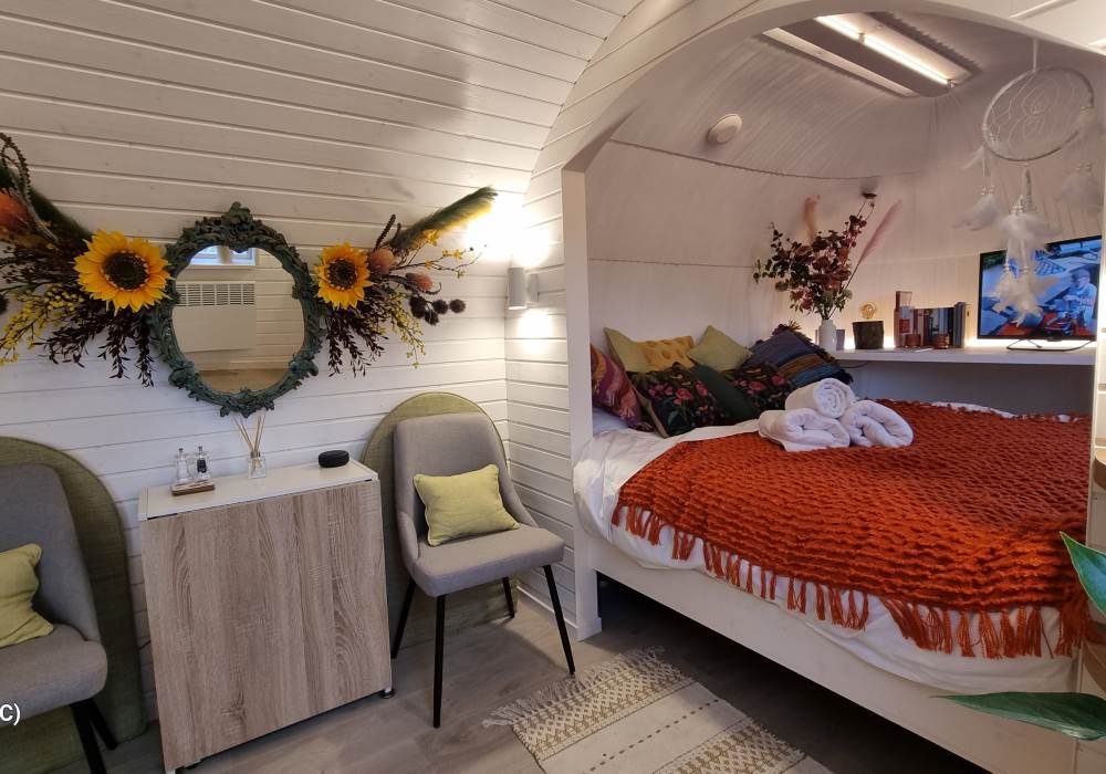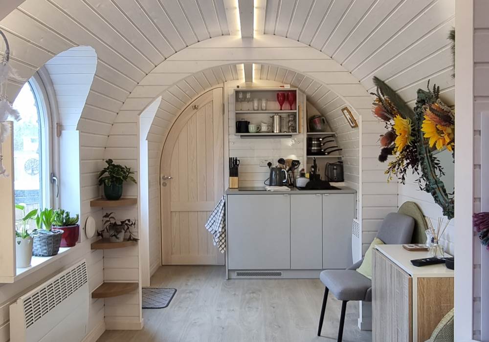 We have created Cabins at The Coach House to provide a unique and unforgettable glamping experience. Our Igluhuts (cabin and sauna) are individually hand built by Iglucraft, a plaque inside the door carries the name of the craftsman who created it. Feeling more like a ‘tiny house’ than a pod, guests will find our cabins comfortable, cosy and practical.