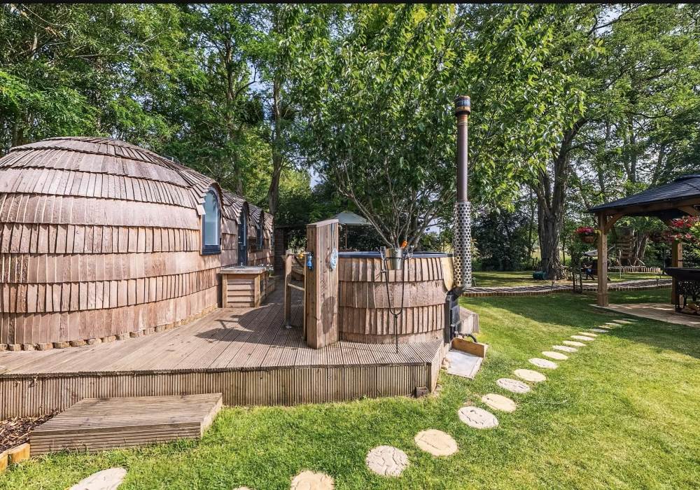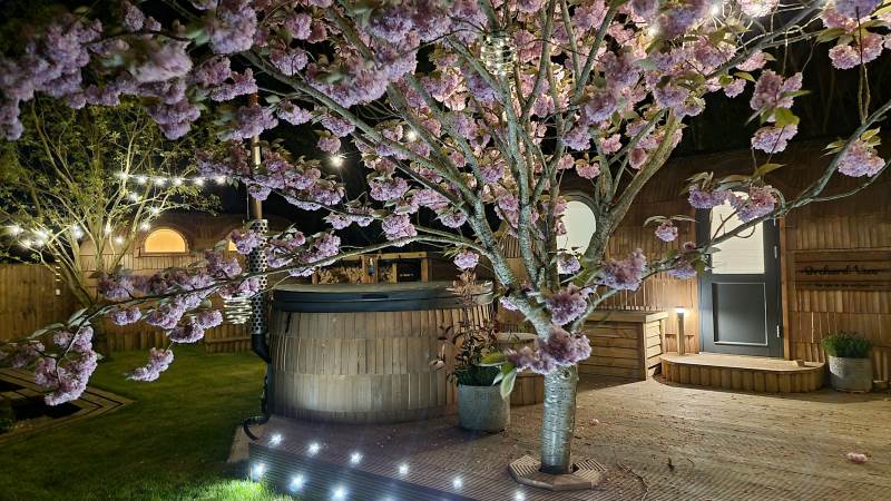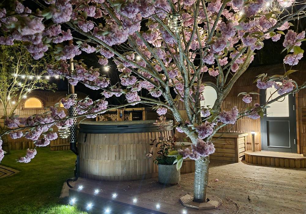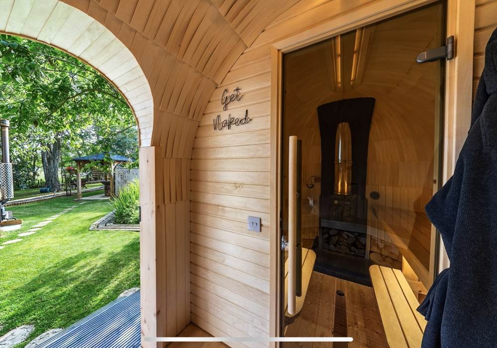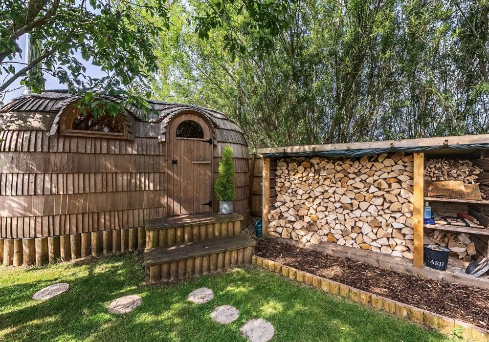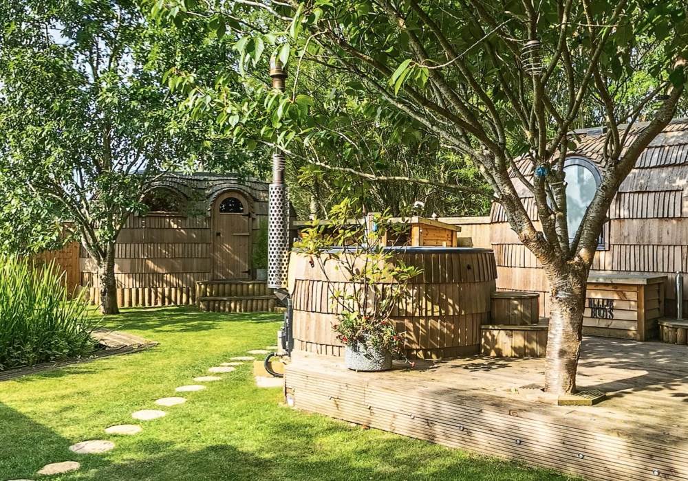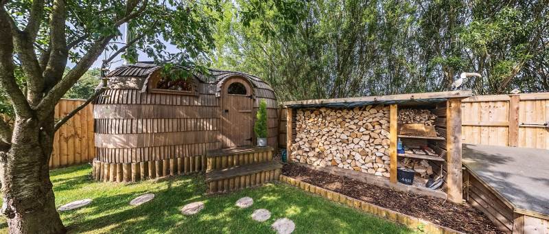 Orchard View includes a private log fired hot tub / plunge pool and a spacious log fired sauna cabin with changing area.