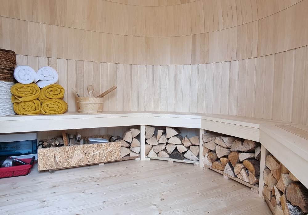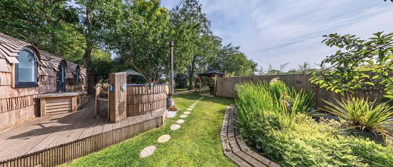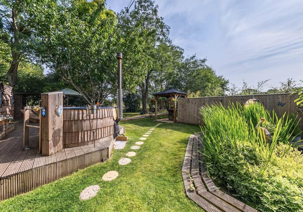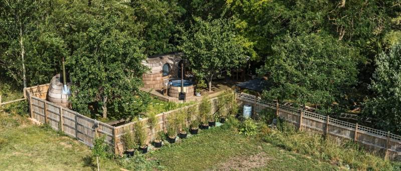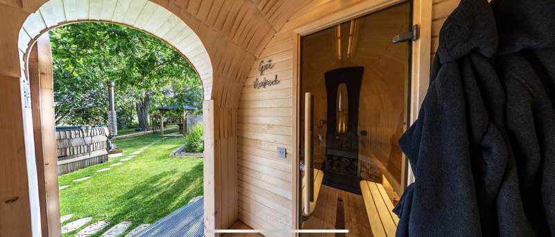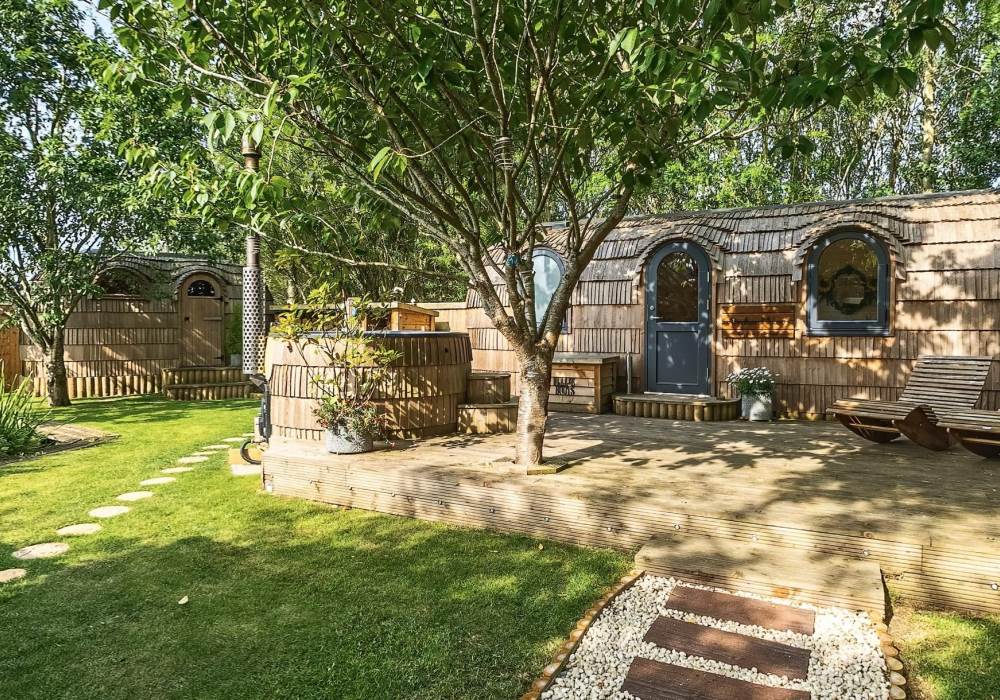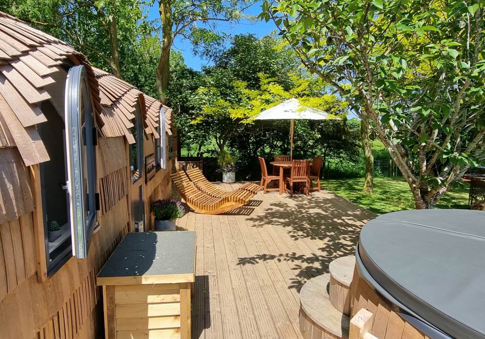 Orchard View includes a private log fired hot tub / plunge pool and a spacious log fired sauna cabin with changing area.