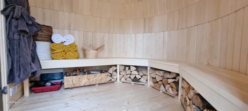Fantastic couple retreat hosts were great even picked us up from train station had such a lovely time did not try sauna but spent a lot of time in hot tub chickens and sheep next to you and they were quite had a cinema night which was great nearest town is around 40 minutes walk but it doesn't feel that long nice garden centre half way and nice walks along side of river.only downside for people without own car is they do not have Uber
