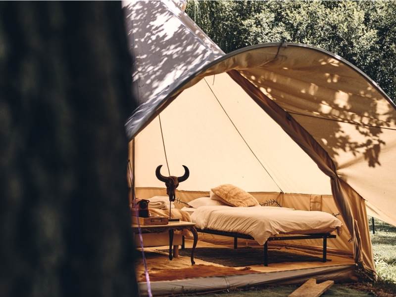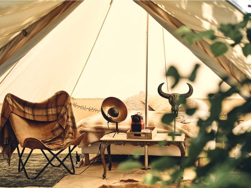 Glamping set in peaceful countryside, our furnished bell tents combine the comfort of a hotel room with the charm of camping under the stars