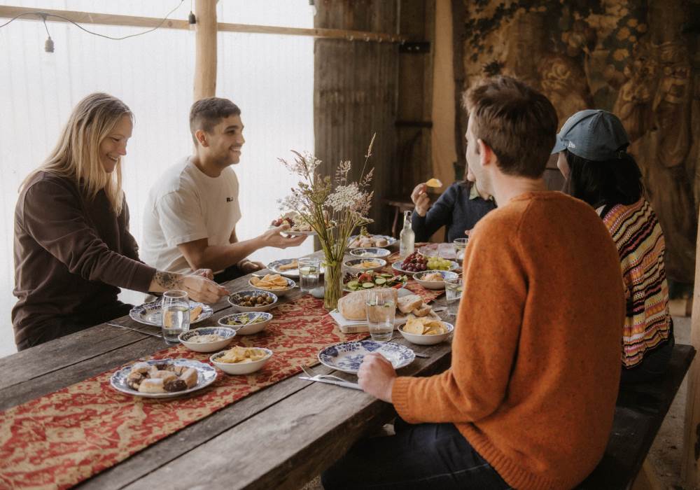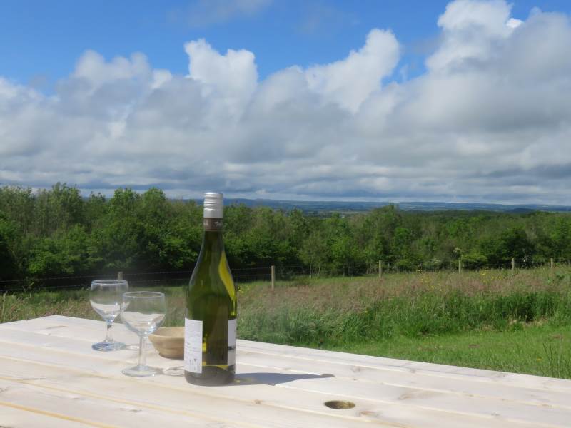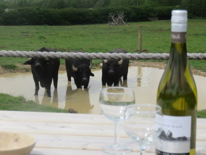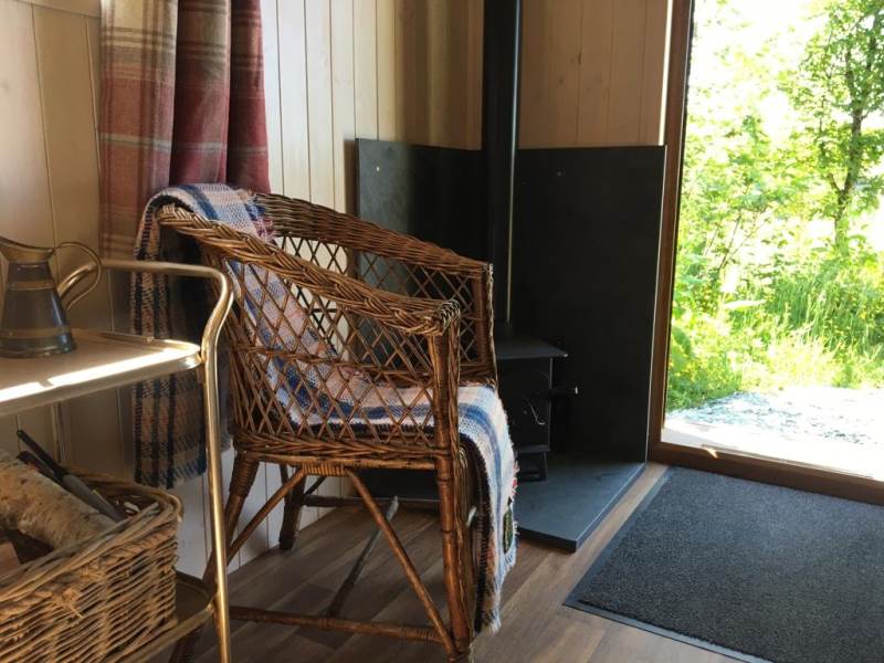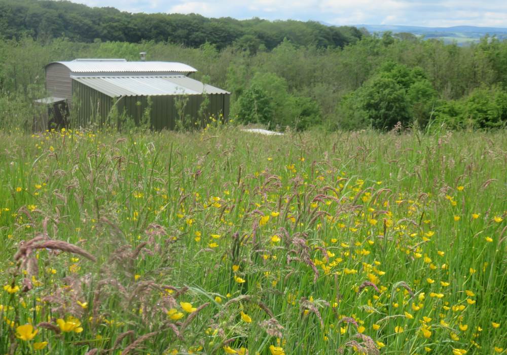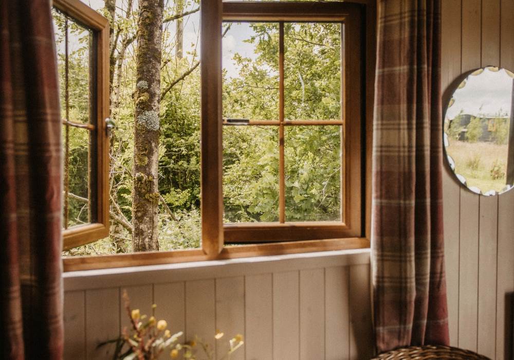 Situated in our wild flower meadow overlooking the rewilding area, our customised shepherd huts provide a beautiful and cosy base for your stay with us. Each shepherd hut contains a double bed (bedding provided) that doubles up as a seating area with a table.