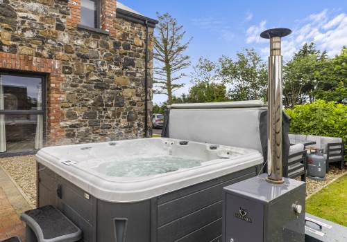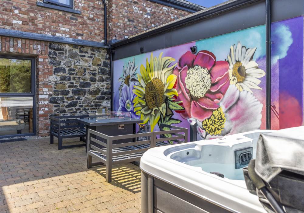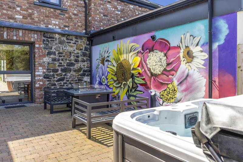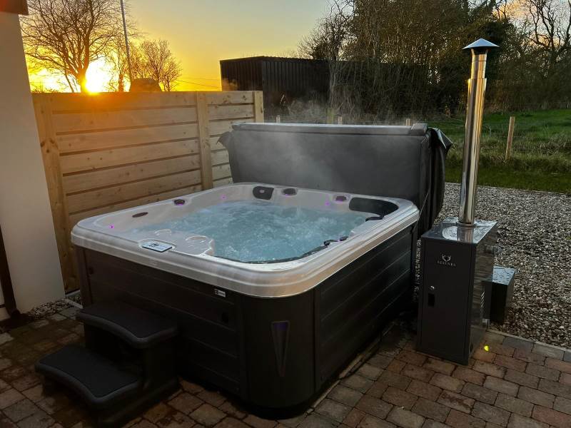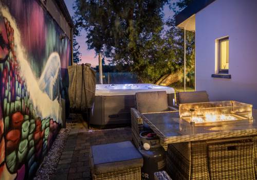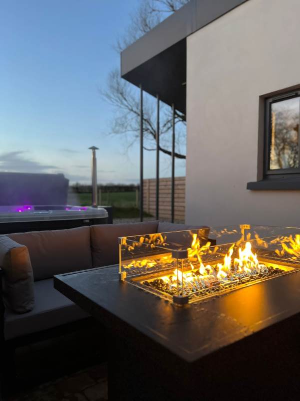 -Private outdoor entertainment area with 6 seater hot tub, fire pit dining table and BBQ facilities (on request)
