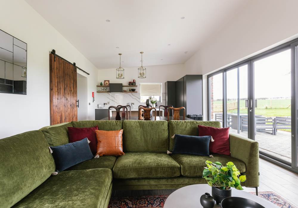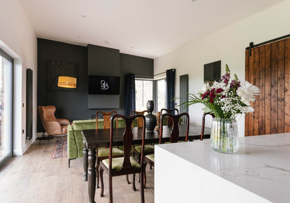 -Large open plan, well-equipped kitchen, dining and lounge area which boasts a 50” smart TV