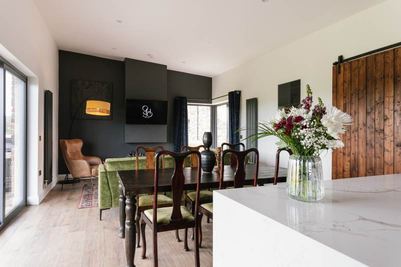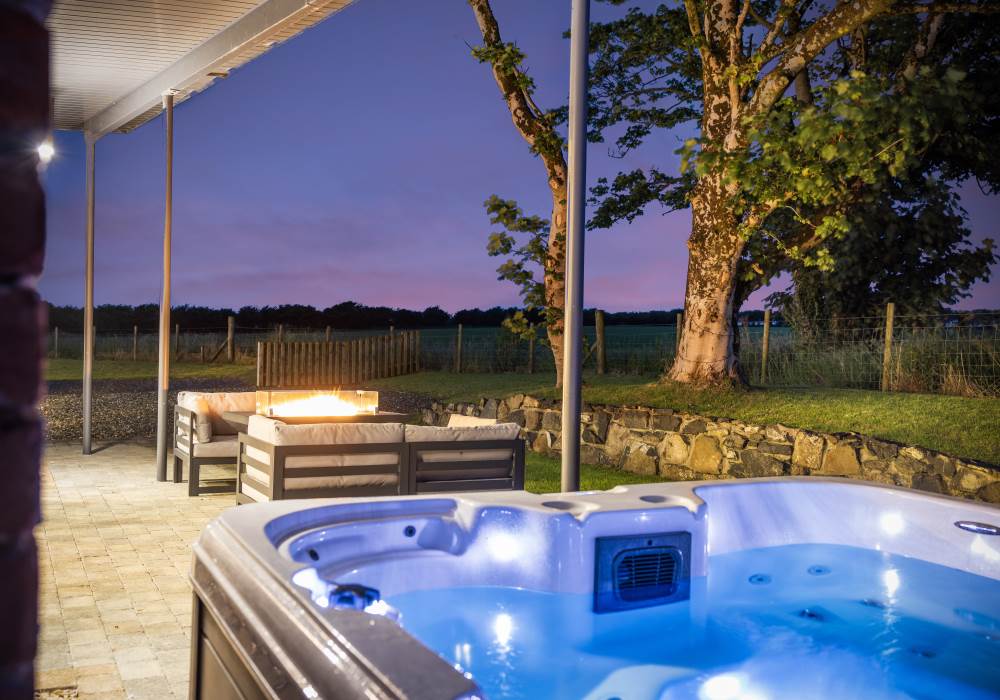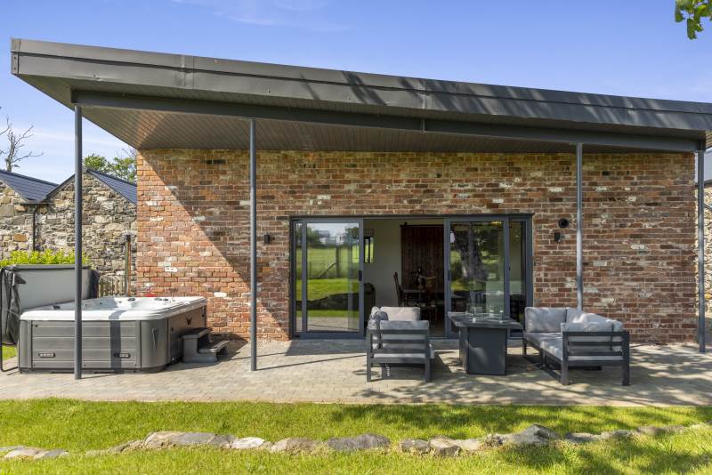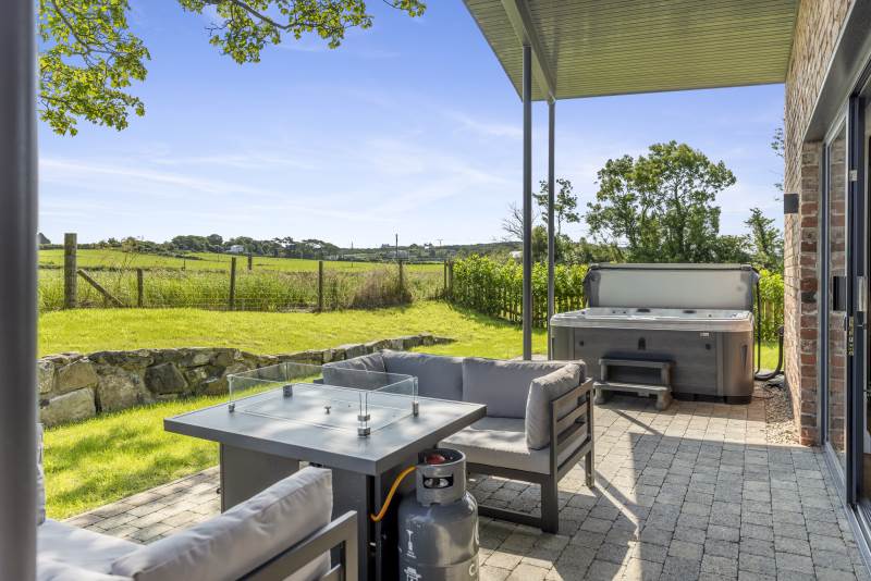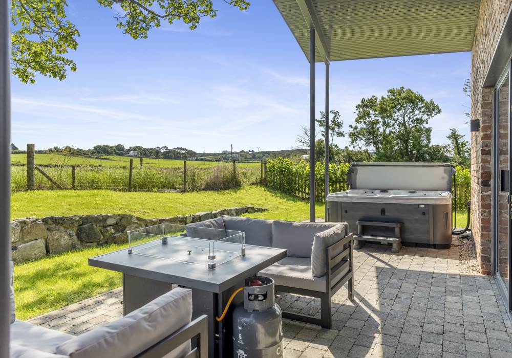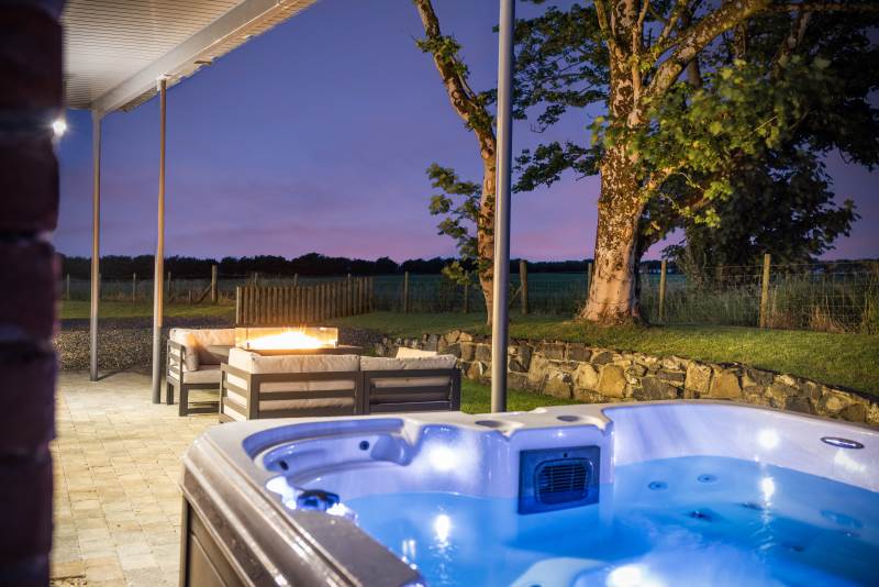 -Private outdoor entertainment area with 8 seater hot tub, fire pit dining table and BBQ facilities (please book the BBQ in the 'extras' section)