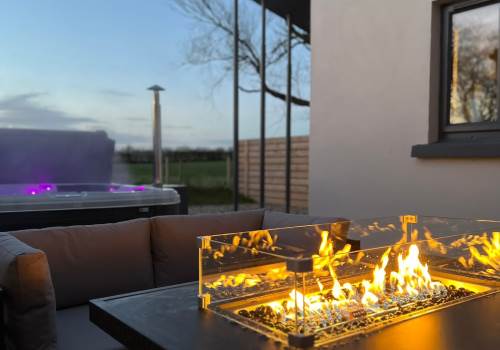 -Private outdoor entertainment area with 8 seater hot tub, large fire pit dining table and BBQ facilities (on request)