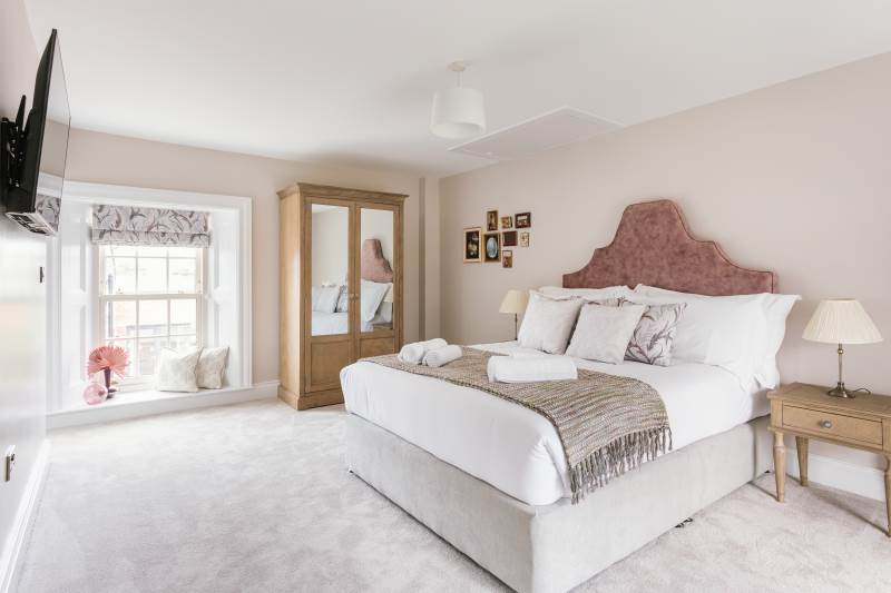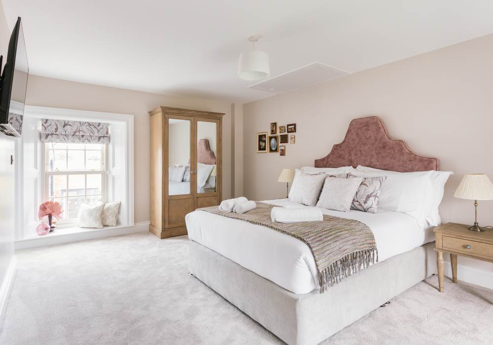 -Luxurious, large master bedroom with a comfortable king-size bed, 43” smart TV and en suite
