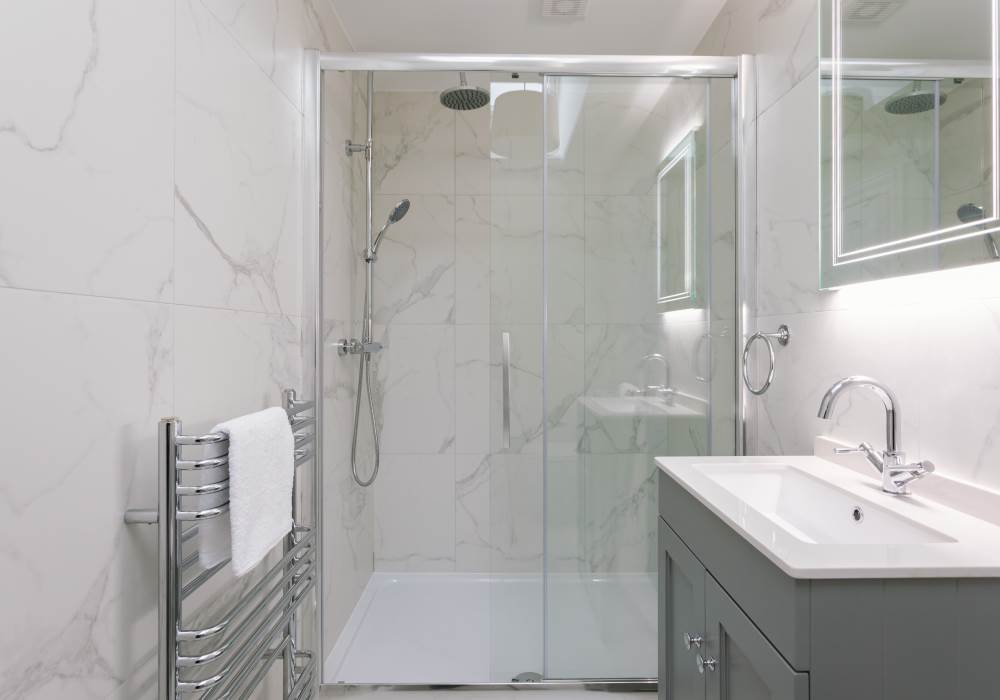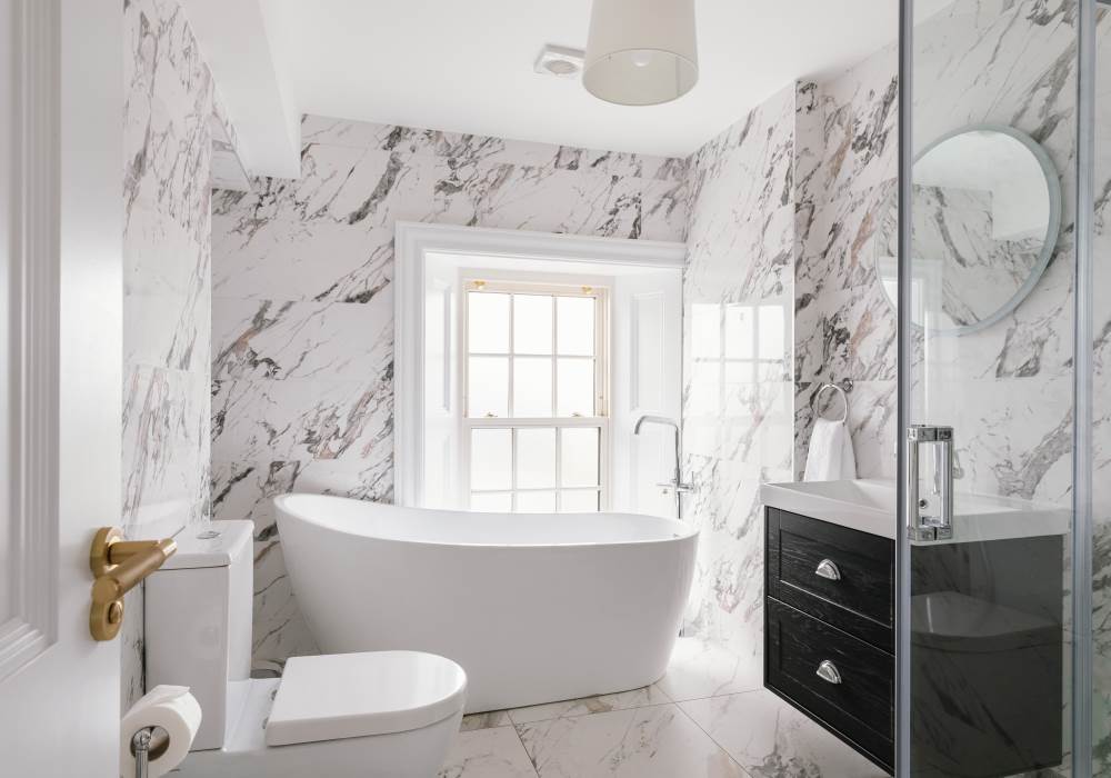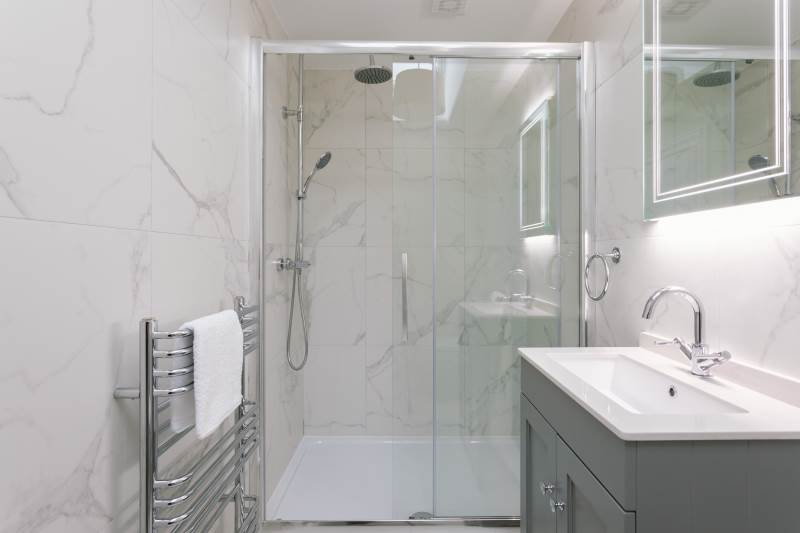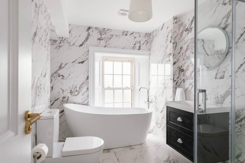 -Large modern downstairs bathroom with a bath, shower, toilet and sink