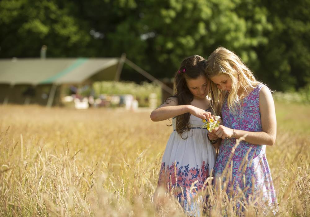 Primrose is set in a spacious and sunny seven acre field with just four other glamping tents, so you can enjoy plenty of space and tranquillity plus beautiful views. Cuckoo Down Farm is five miles from lovely beaches and on the farm itself there is a three acre oak and bluebell wood to explore. Dogs are welcome and the glamping here is set up with children, friends and families in mind.