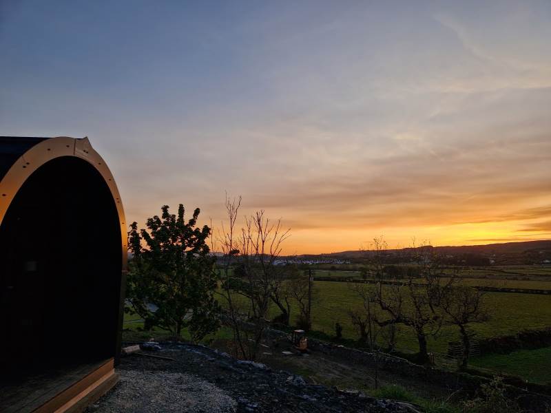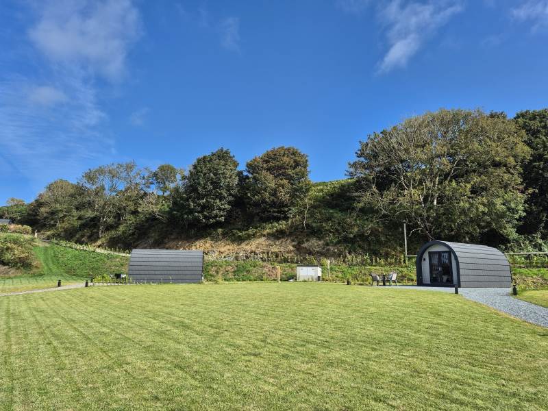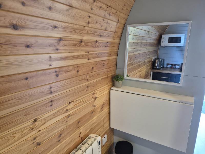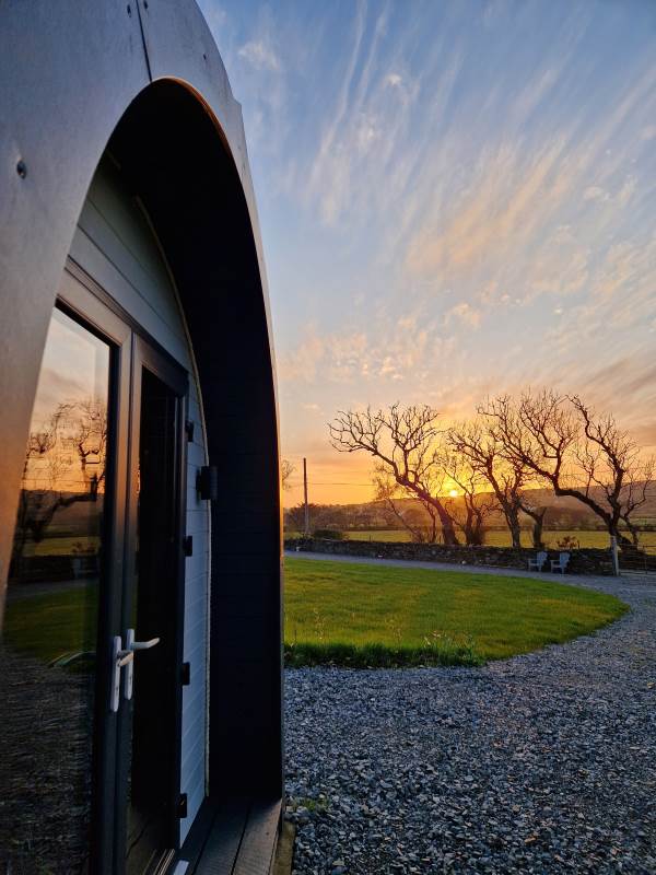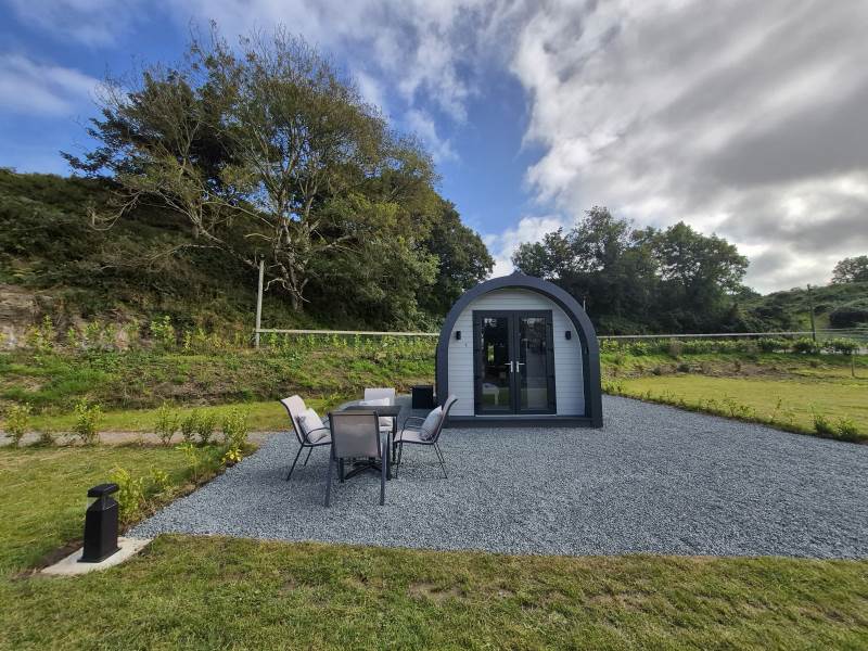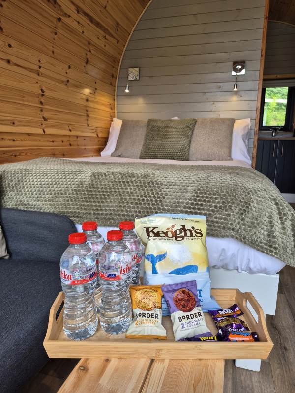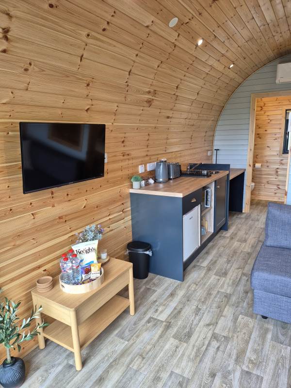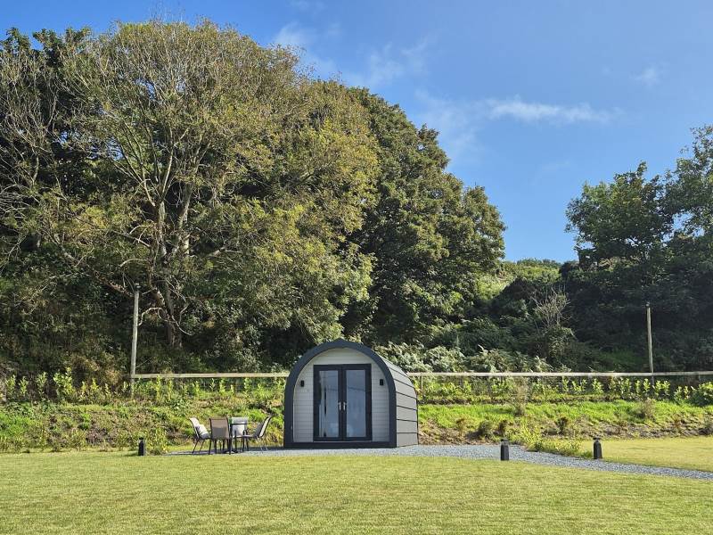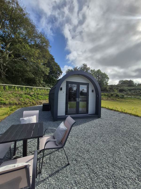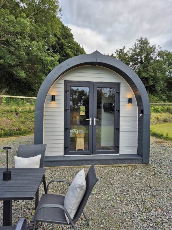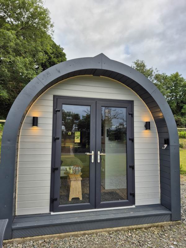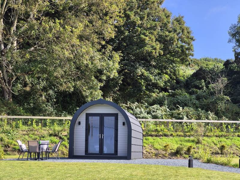 Glamping Pod with one double bed & two bunk beds.