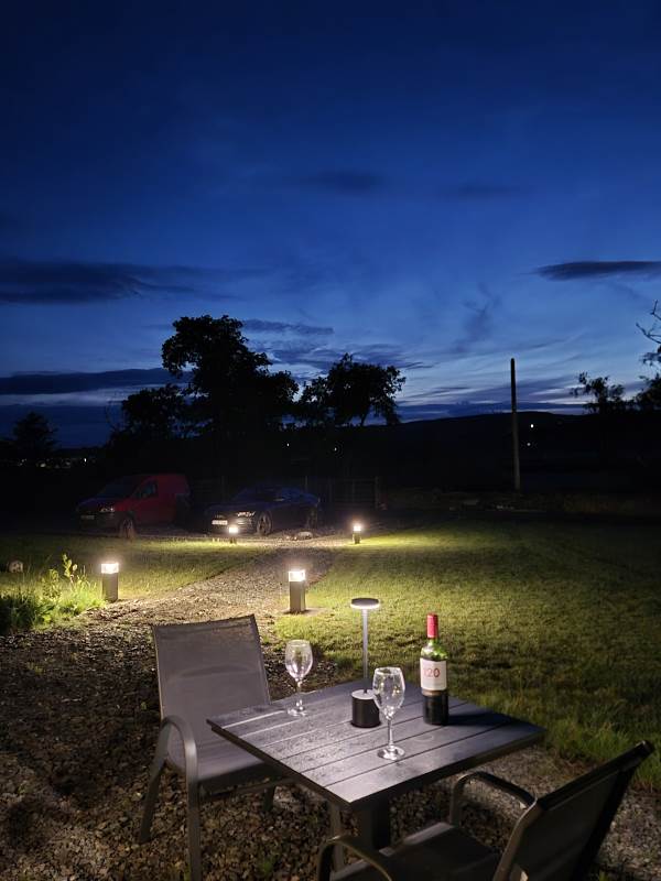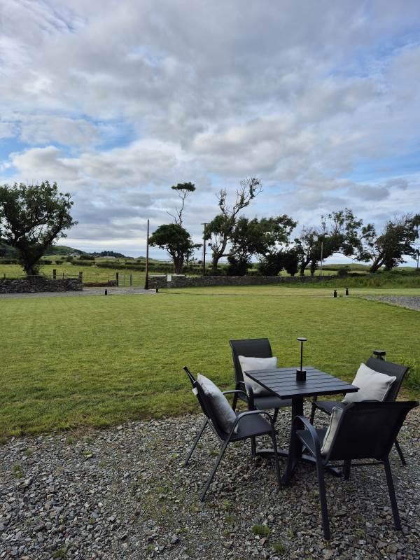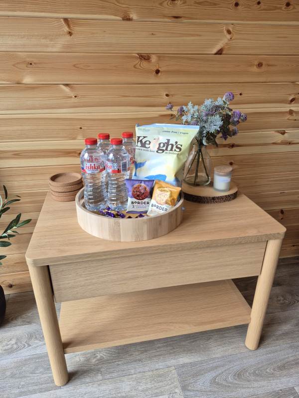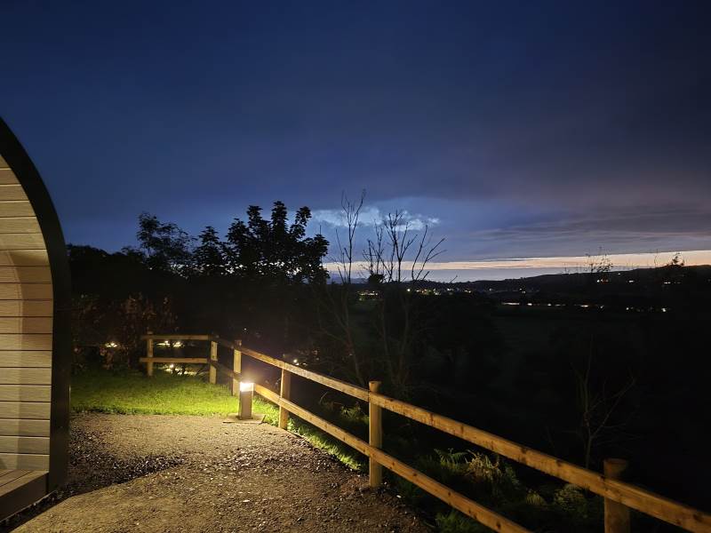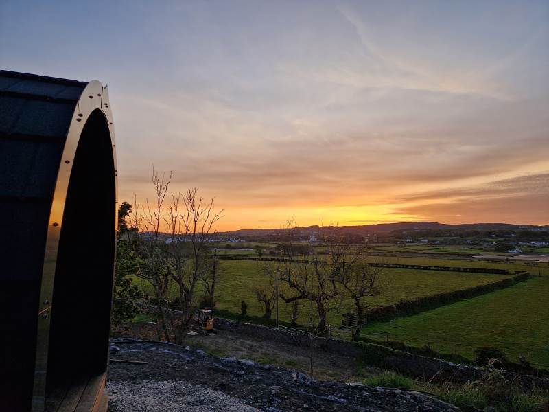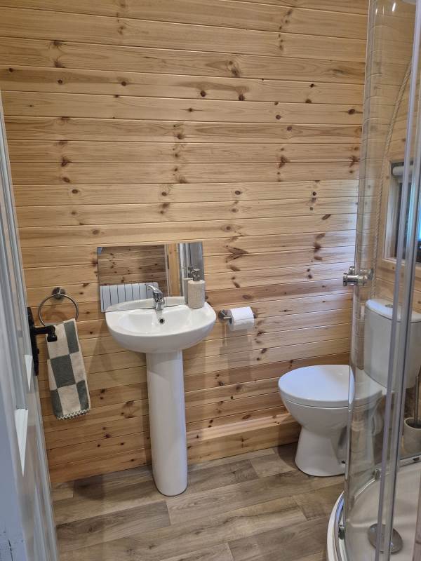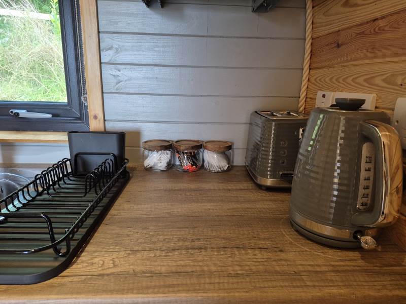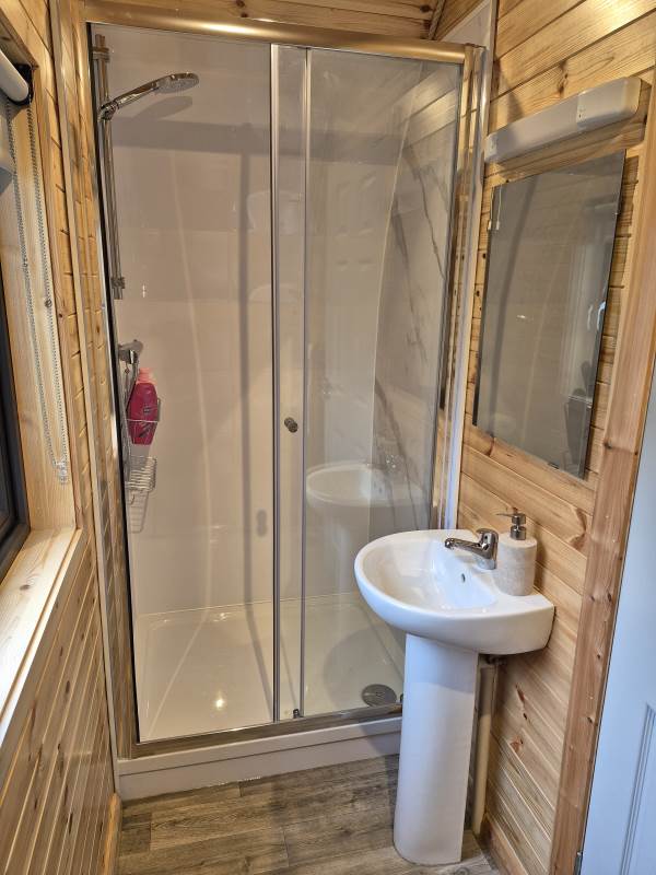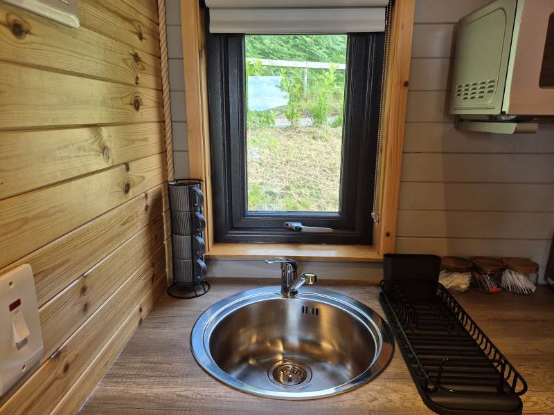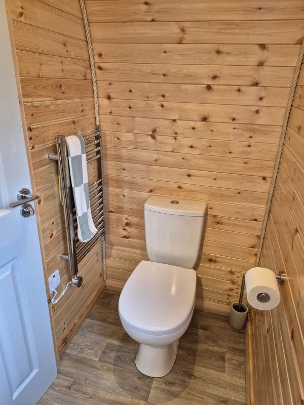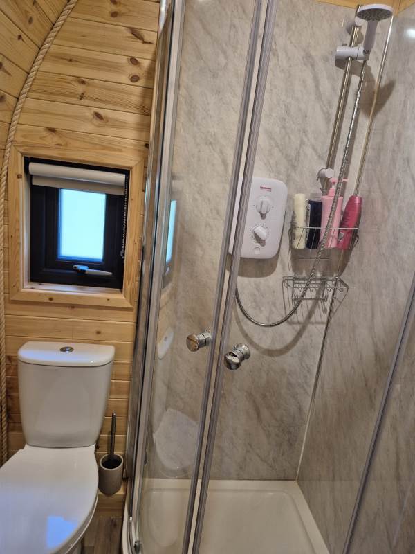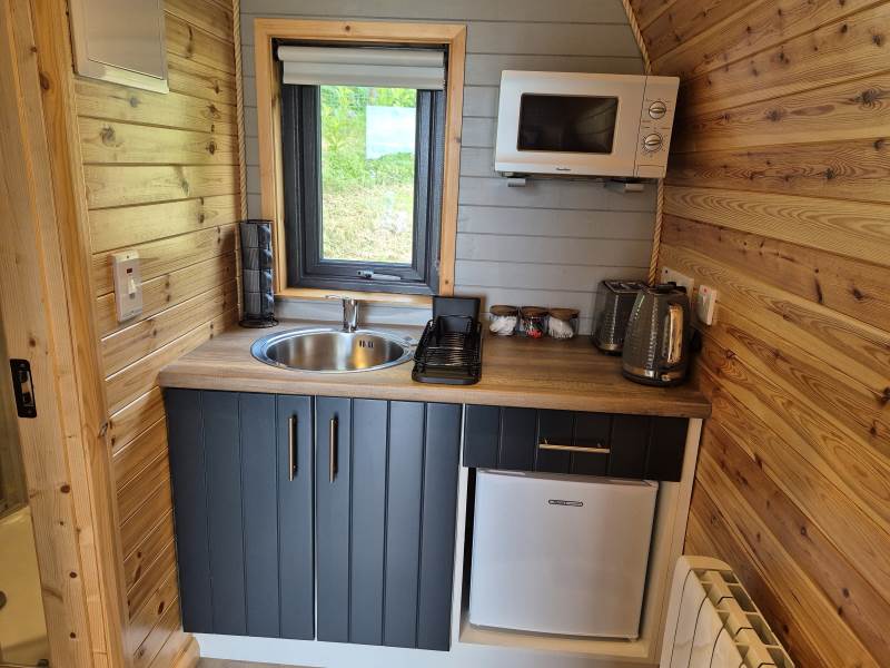 Glamping Pod with one double bed & two bunk beds.