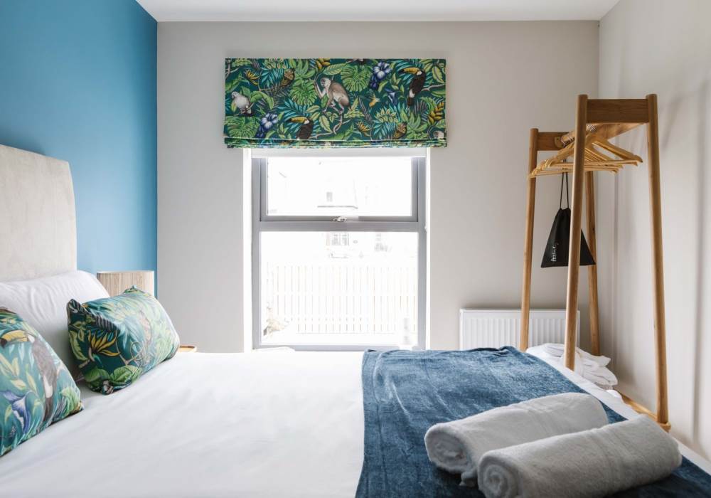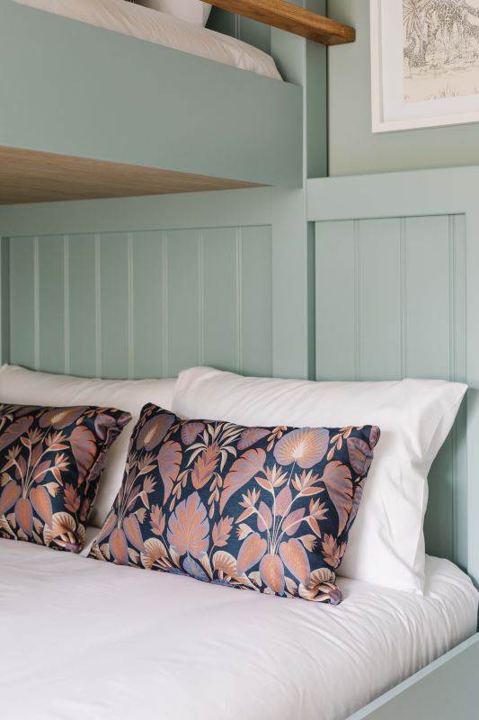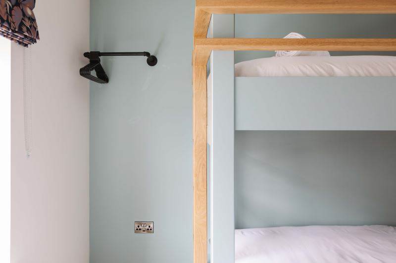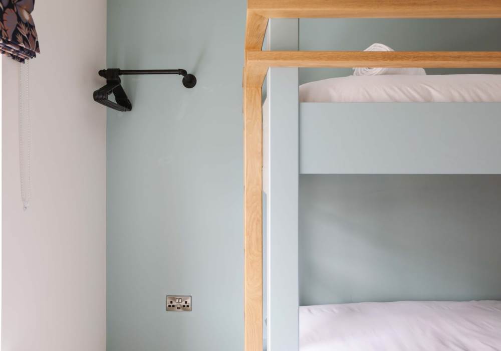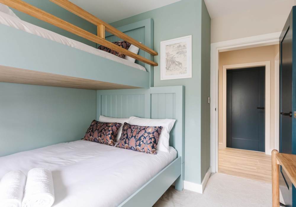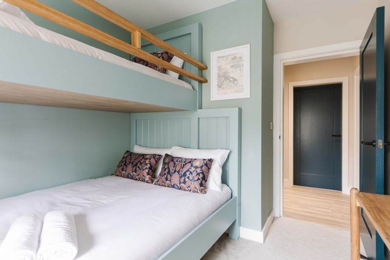 Second bedroom with bespoke bunk beds, a single on top and double on the bottom.