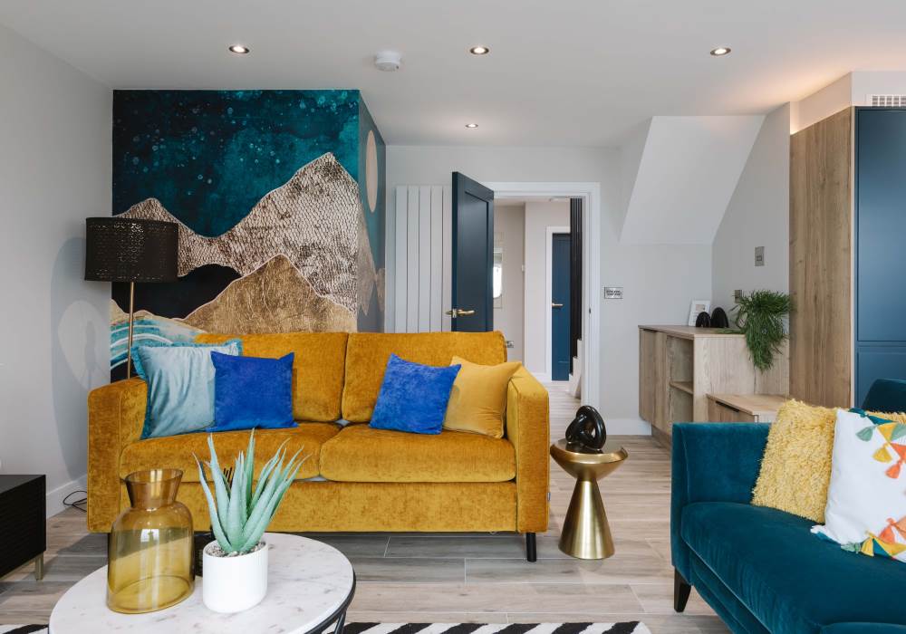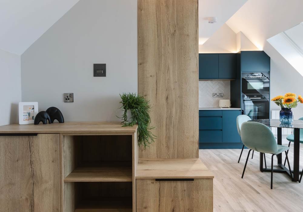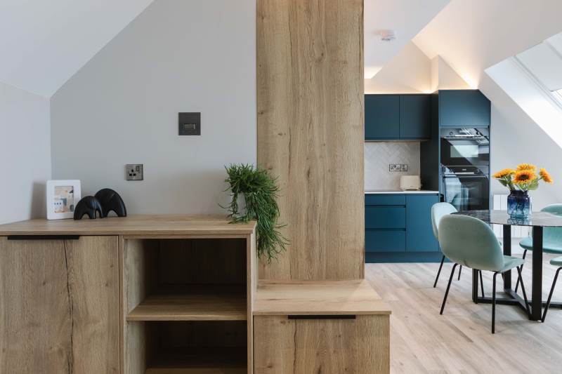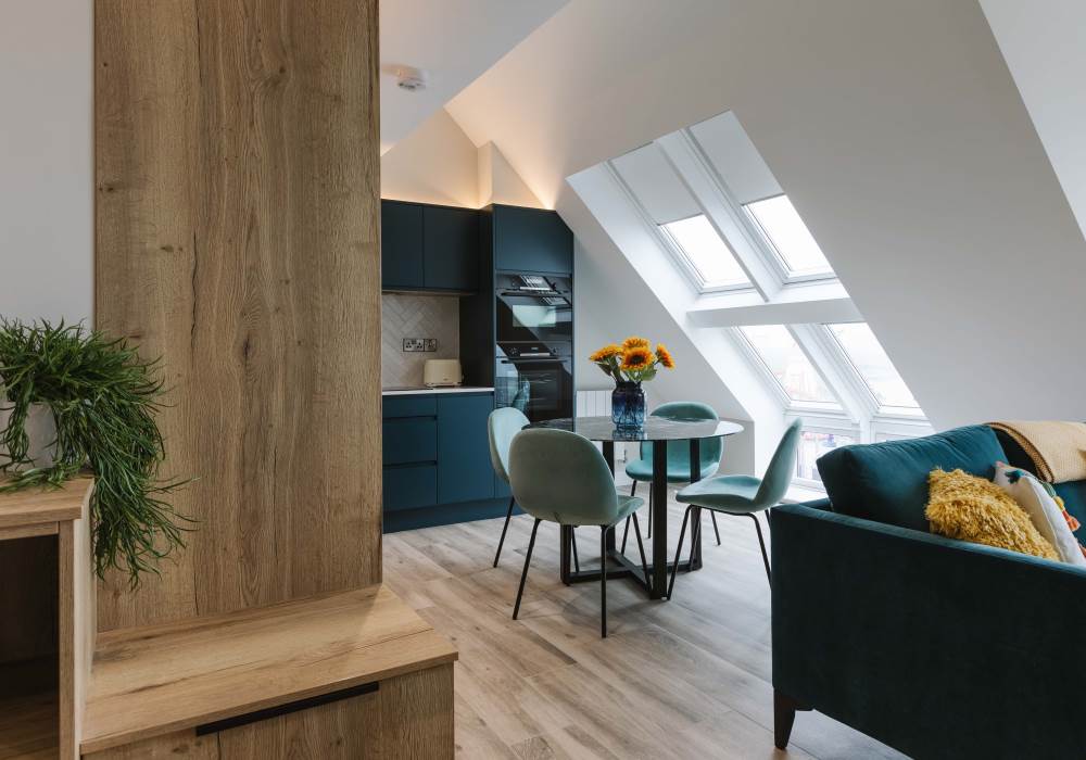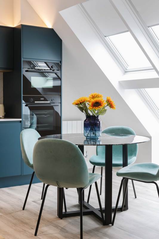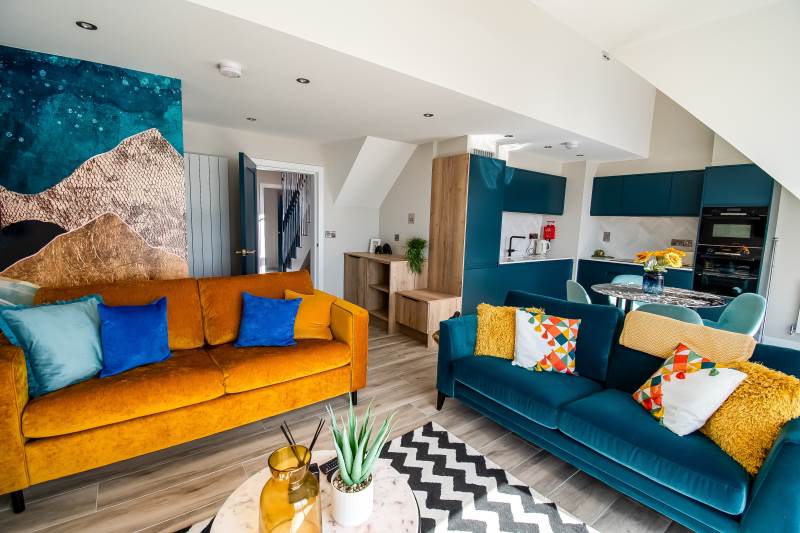 Luxurious open plan, well-equipped kitchen, living and dining area.