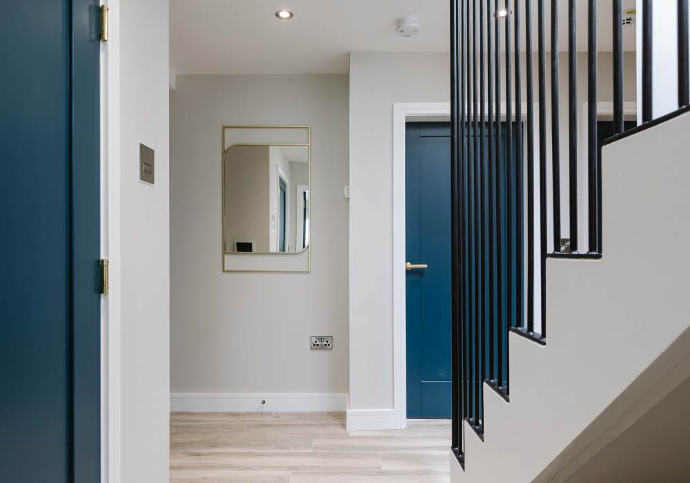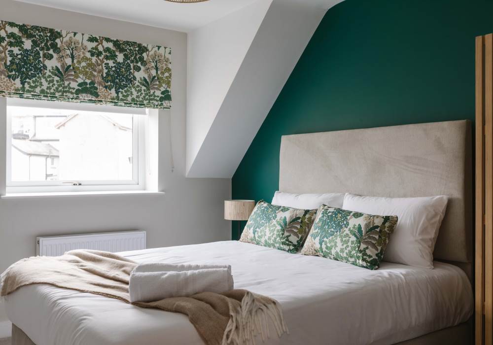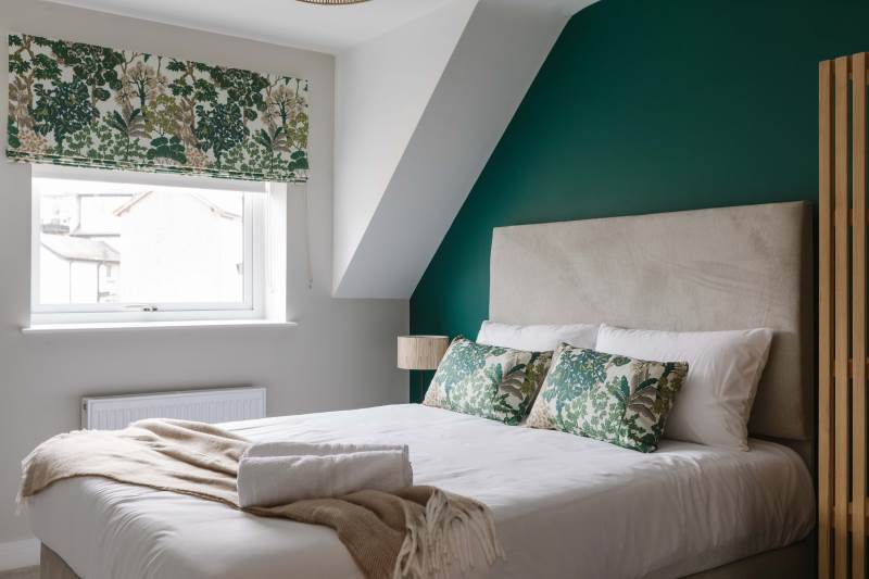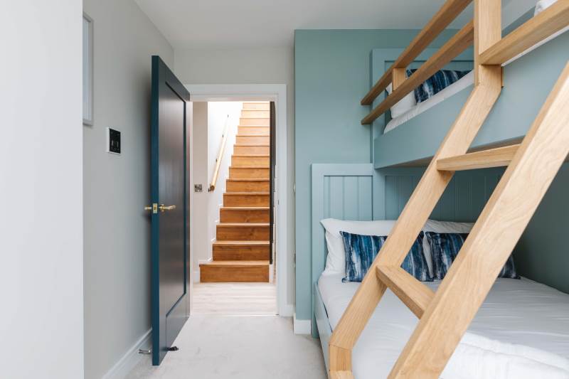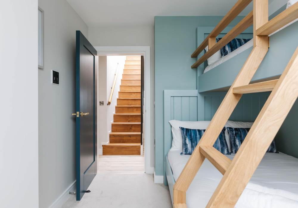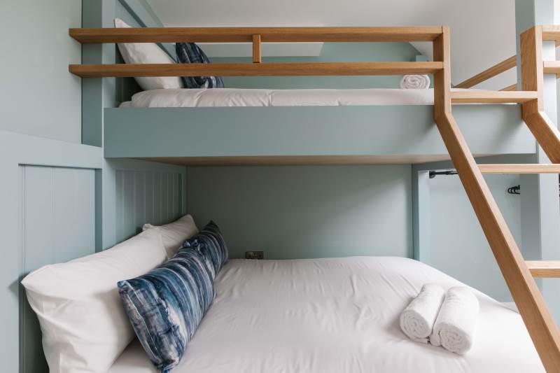 Second bedroom with bespoke bunk beds, a single on top and double on the bottom.