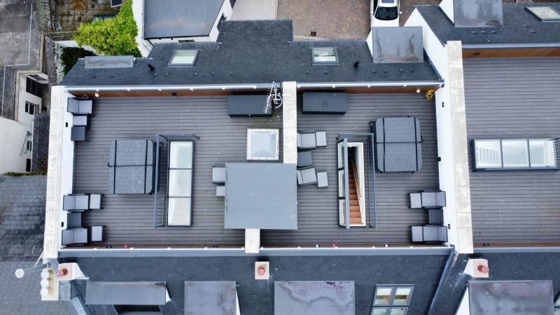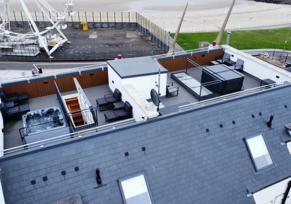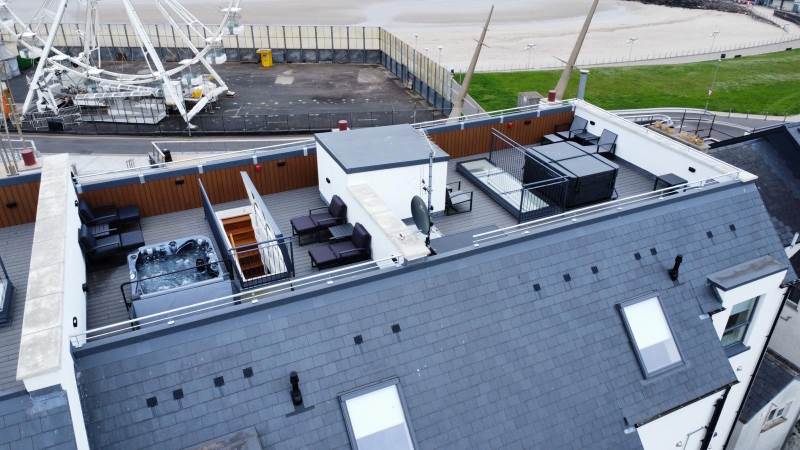 Private roof top outdoor entertainment area with 6 seater hot tub and outdoor seating.