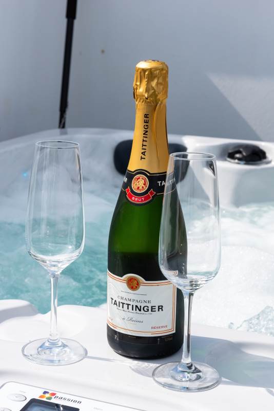 Private roof top outdoor entertainment area with 6 seater hot tub and outdoor seating.