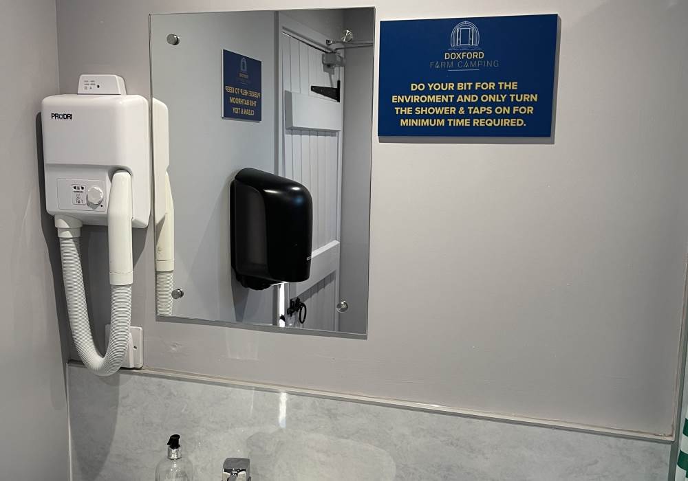 We have a brand new shower block as of 2021 which has 3 spacious shower rooms, each consisting of a large power shower, basin, loo, mirror and hairdryer. Alongside this we have a pot wash area with hot water. We are doing our bit to help protect the environment and have a recycling point for various items.