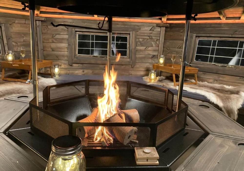 • Large indoor fire pit Lodge to sit and enjoy with friends logs not supplied