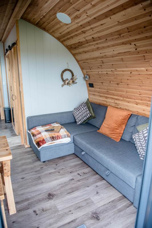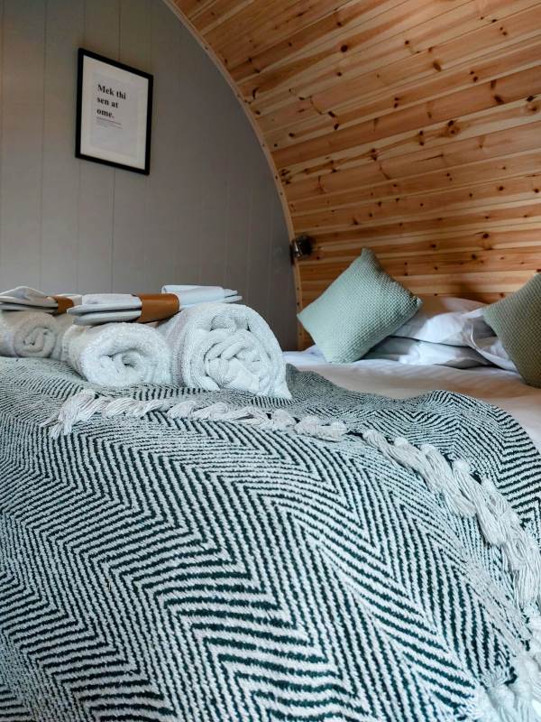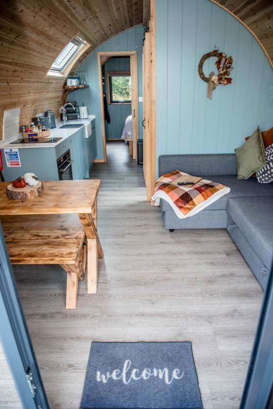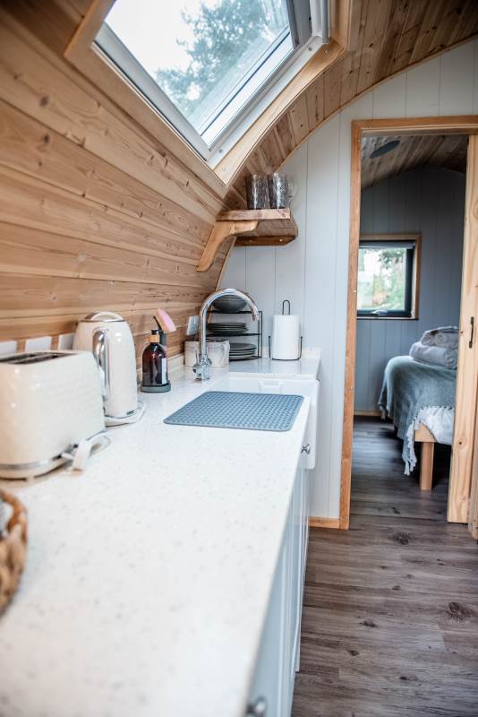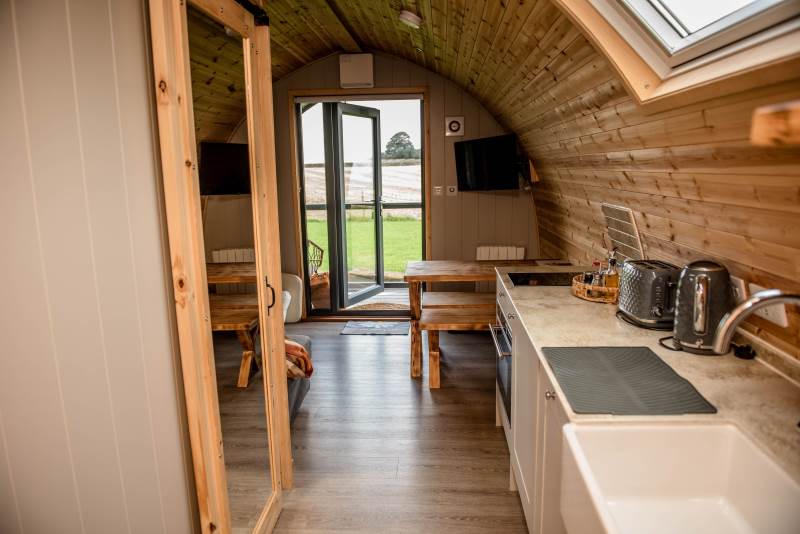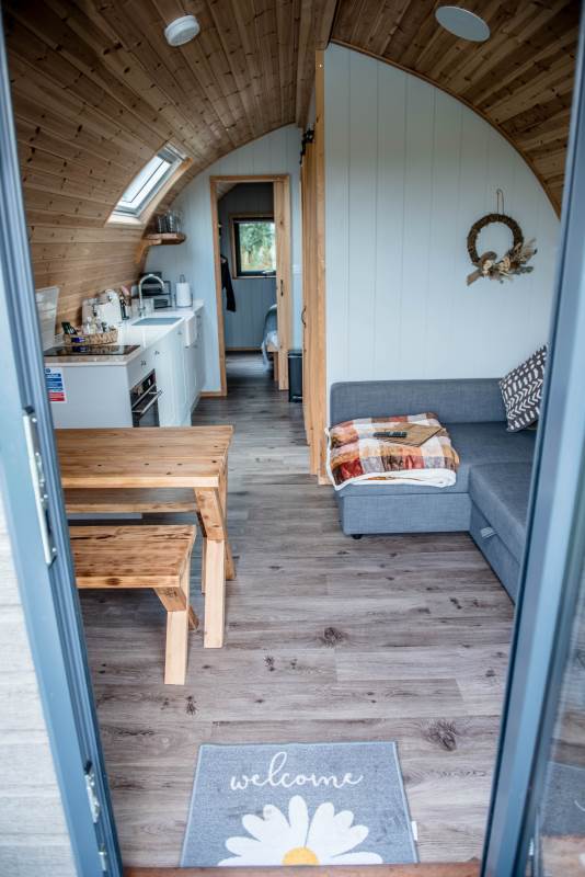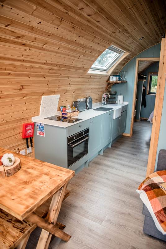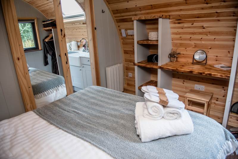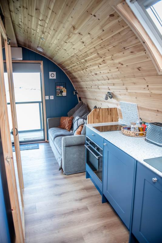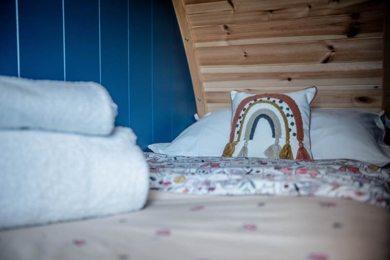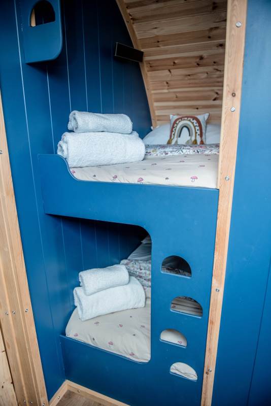 A well-equipped bespoke pod with bunk beds perfect for families with young kids