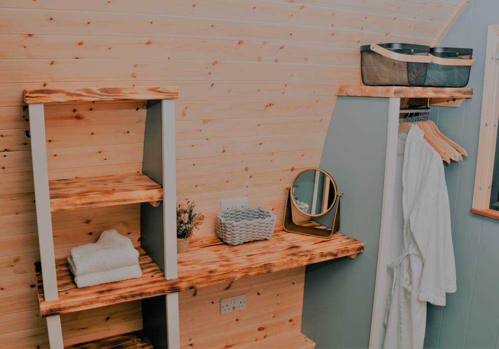 Including a king-sized bed in a separate bedroom area with its own dressing table, wardrobe, and shelves for extra storage space