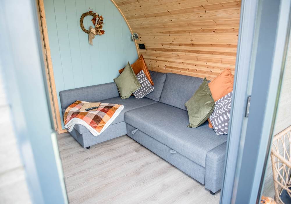 Pull-out sofa bed with bedding stowed away (when booked for more than 2)