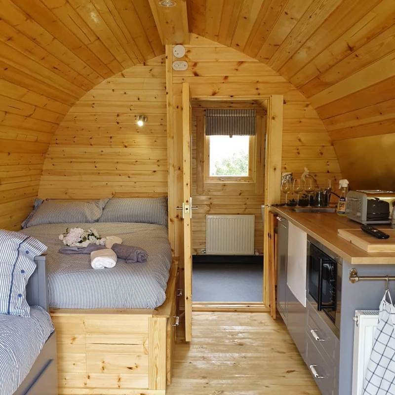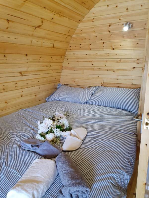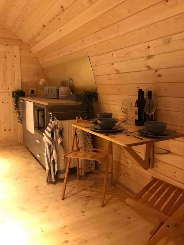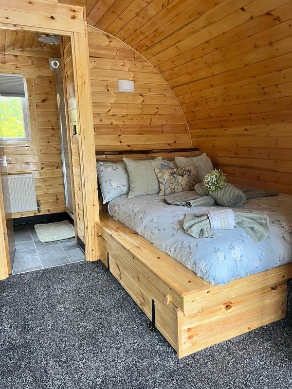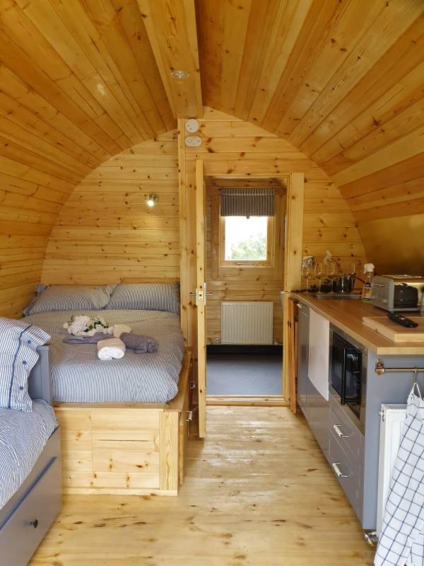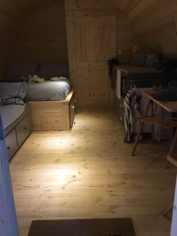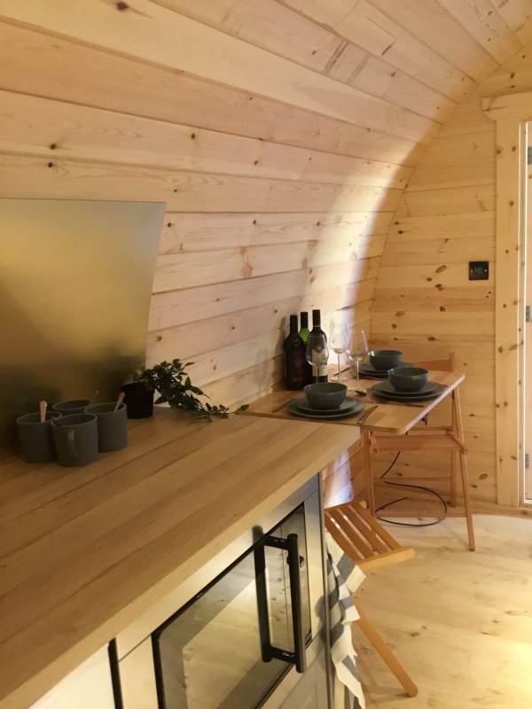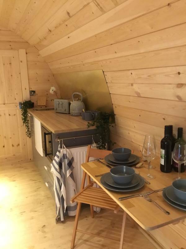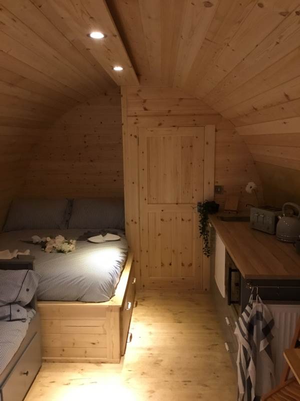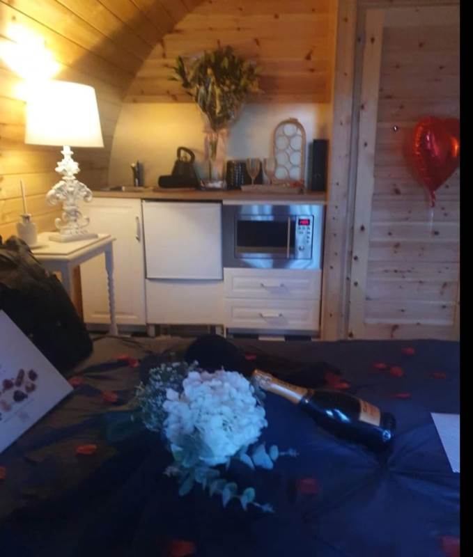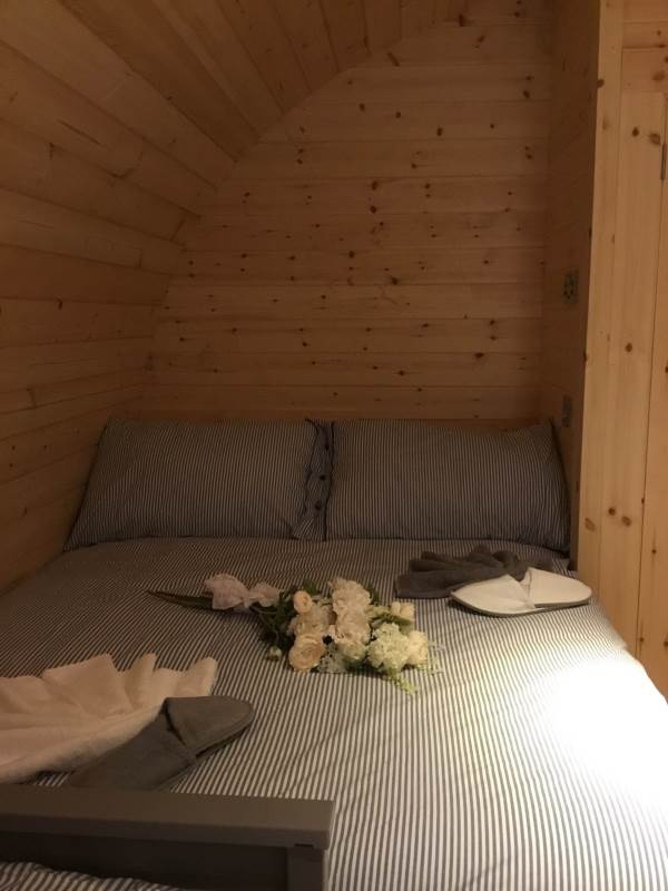 Absolutely beautiful pod, very modern, cosy, and nipping clean. The area was beautiful with an even better view! The staff were very friendly and professional. Hot tub in privacy with little fairy lights making it feel even more special. The price was amazing for what we got! There’s shops local, so very ideal. We will definitely be returning! 100% would recommend.
