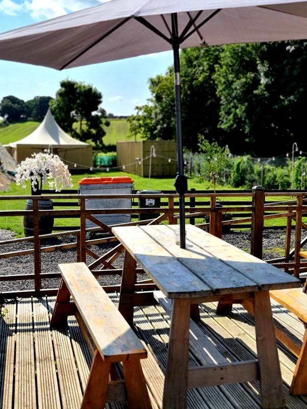 Hard standing motorhome pitch for your own motorhome including a fully covered hot tub area which also includes a logs burning fire and seating area