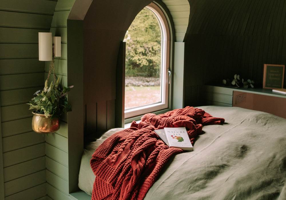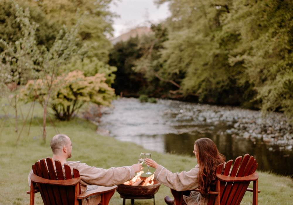 Stay in this luxury riverside cabin featuring private wood-fired hot tub with stunning views of the Shimna River and orchard garden. Lie back with the window flung open & relax as you immerse yourself in nature's soundtrack of birdsong & the gentle babbling river.