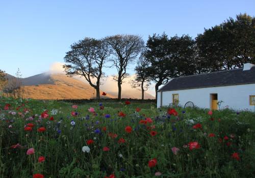 This remote Mourne Mountain cottage stay is an opportunity to get lost within a wilderness of wildflower meadow, Emerald green farmland & cloud shrouded mountains … where your only visitors are wooly sheep, red squirrels & soaring buzzards overhead.