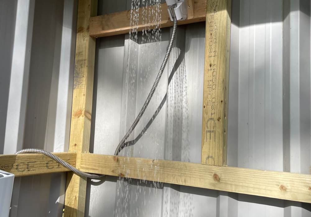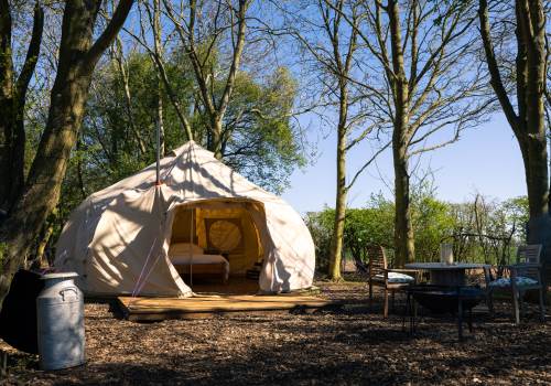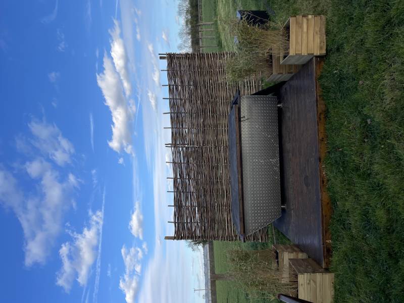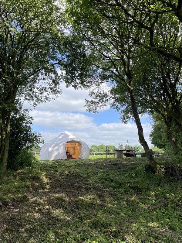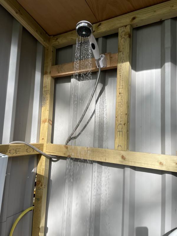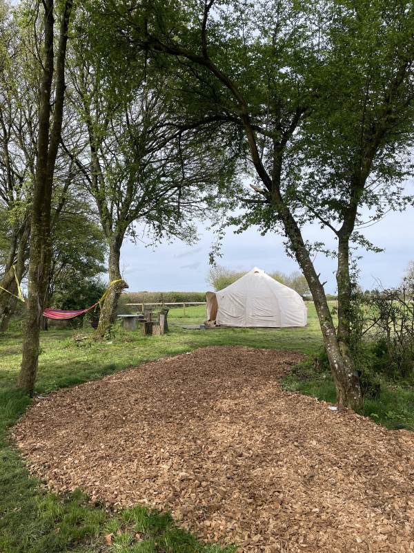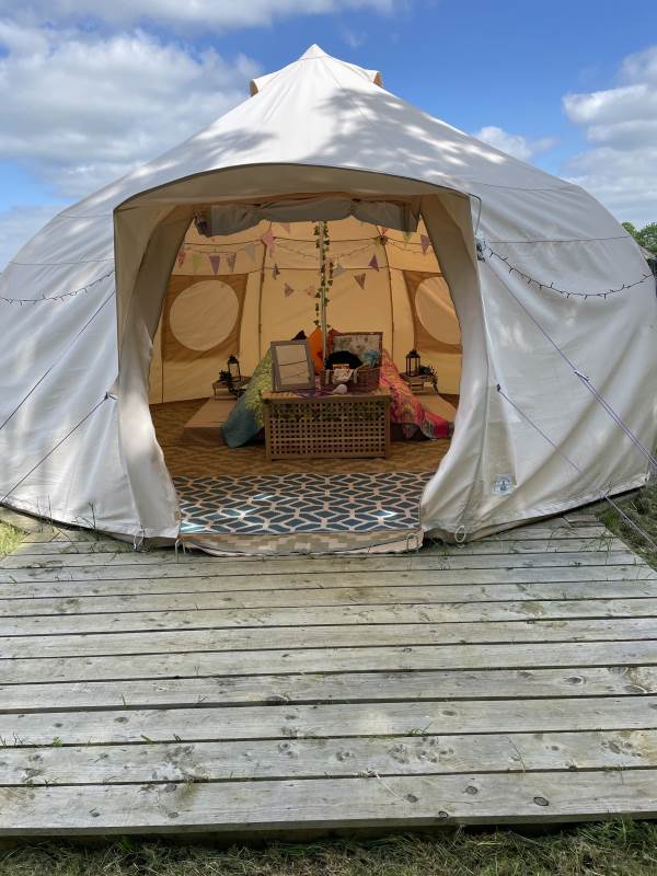 The Kitchen - a converted horse trailer that has all utensils, prep area, water and a gas ring hob, is shared with the other tent but you have your own cool box with ice blocks to use as a fridge. The outdoor shower - has hot water run by a generator and a basin - both kitchen and shower are shared with the other tent. You have your own compostable loo.