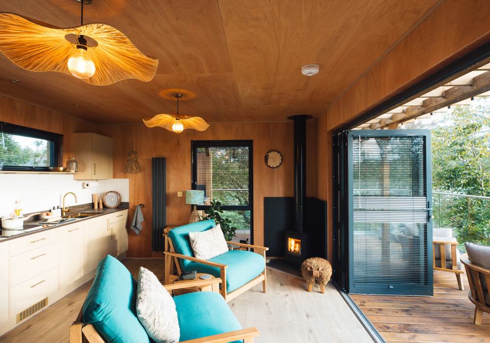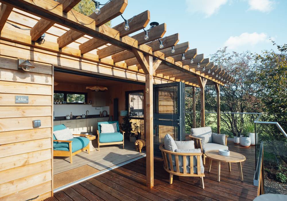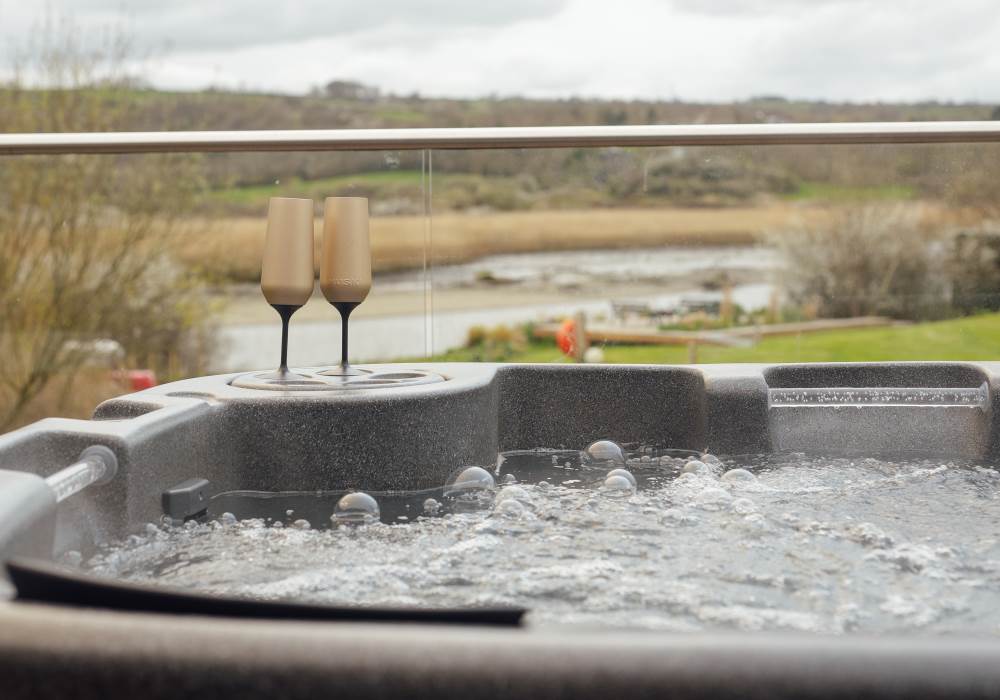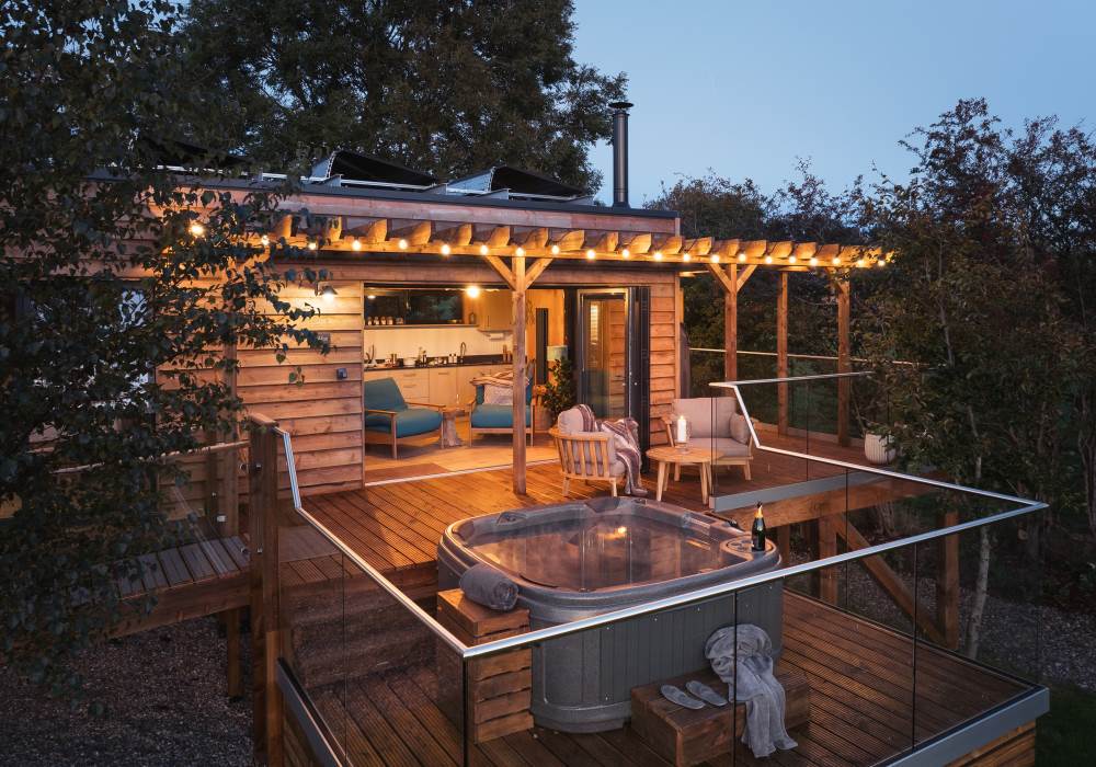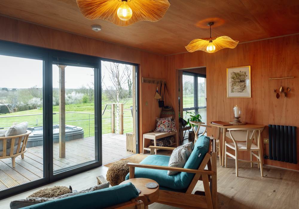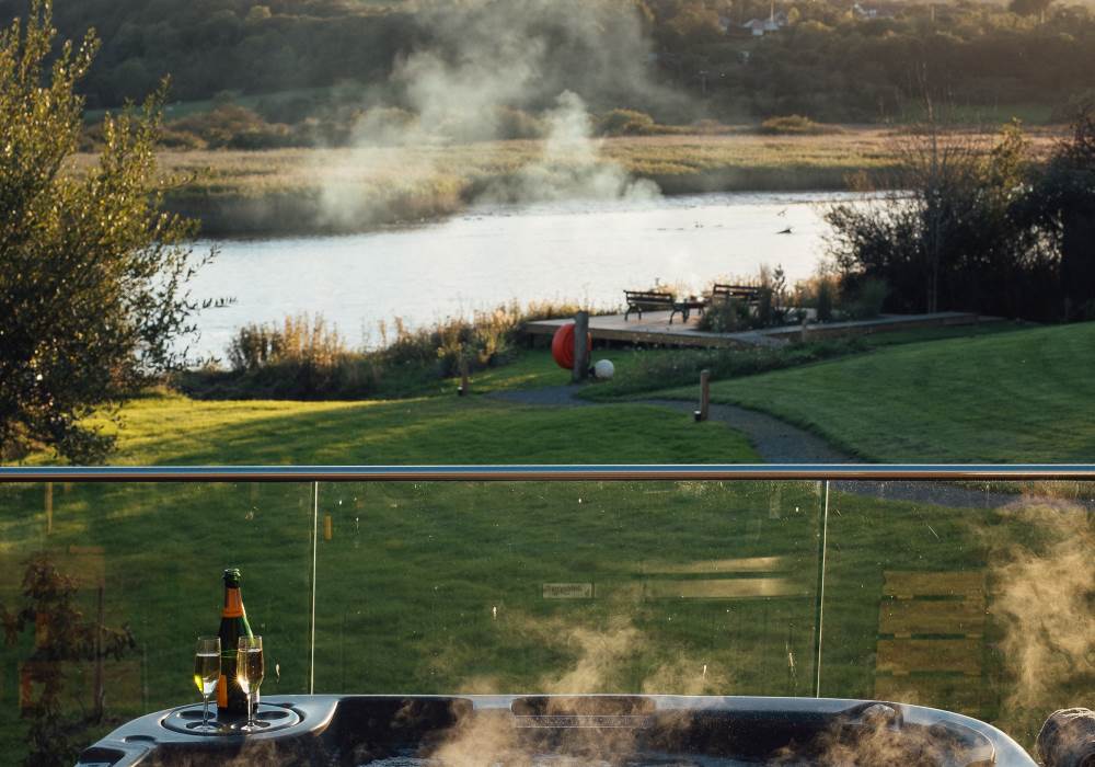 An architect designed, sustainable lodge with incredible views across the Teifi River to the banks of the Teifi Marshes wetlands. With a luxury bathroom, bedroom with king-size beds (or two single beds), a lounge, diner and kitchen with wood burning stove and bi-fold doors to an private, enclosed, outdoor deck with outdoor kitchen and hot tub.