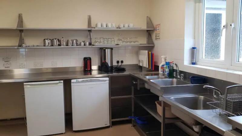 Lockable kitchen. Games Room/Meeting Room with ramped access at front and rear of building. Door alarms can be set if required.
