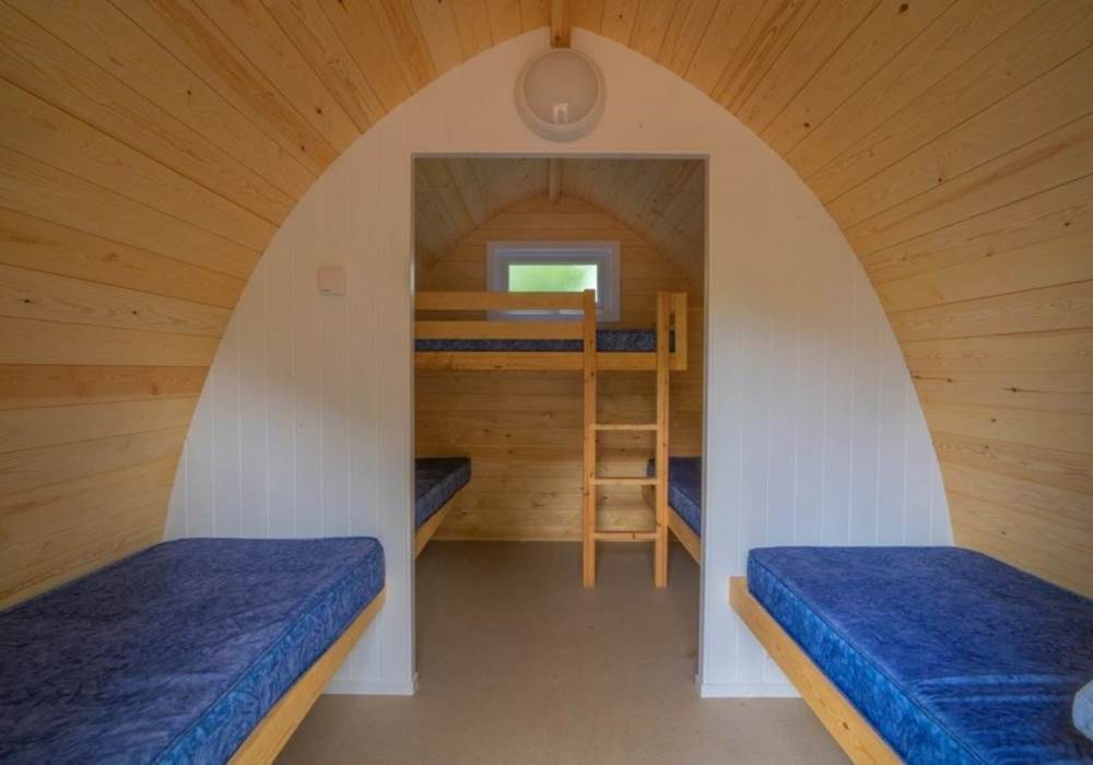 A modern camping pod, comprises single beds with mattresses . Includes under floor heating, 2 x plug sockets,2 x 5v USB charging points and led lighting.