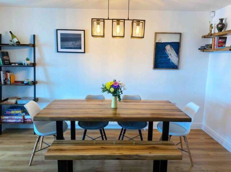 The living area is bright and airy, with large windows that offer breathtaking views of the sparkling Portrush sea. The space is tastefully decorated with modern furnishings and includes a comfortable sofa where you can relax and unwind after a busy day of exploring the local area.