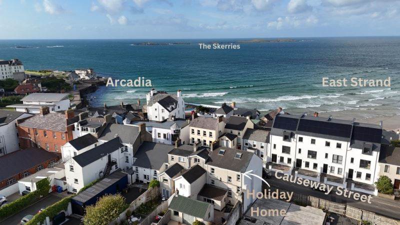 Escape to the charming coastal town of Portrush and enjoy a stay at this large townhouse located on Causeway Street. This spacious property is perfectly situated in the heart of the town, within walking distance to the beach, golf courses, restaurants, shops, and bars. It sleeps 11 guests and has a carpark, garden and a seaview from the top floors lounge area.