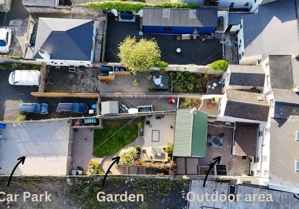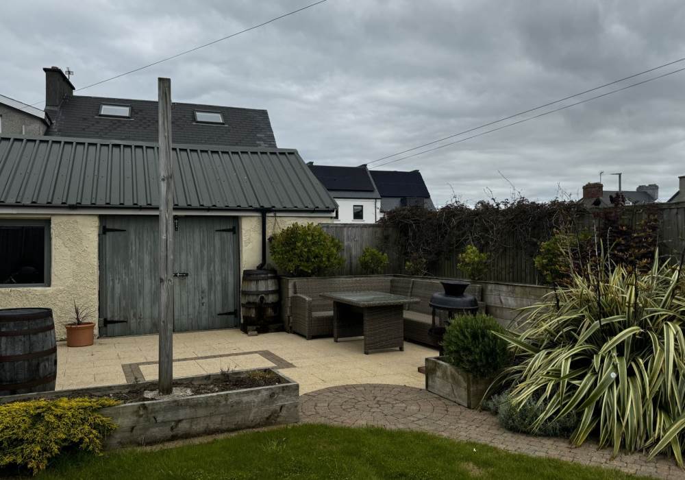 A garden with outdoor seating and BBQ area which gets brilliant evening sun and the outdoor entertainment area also includes a fire pit.