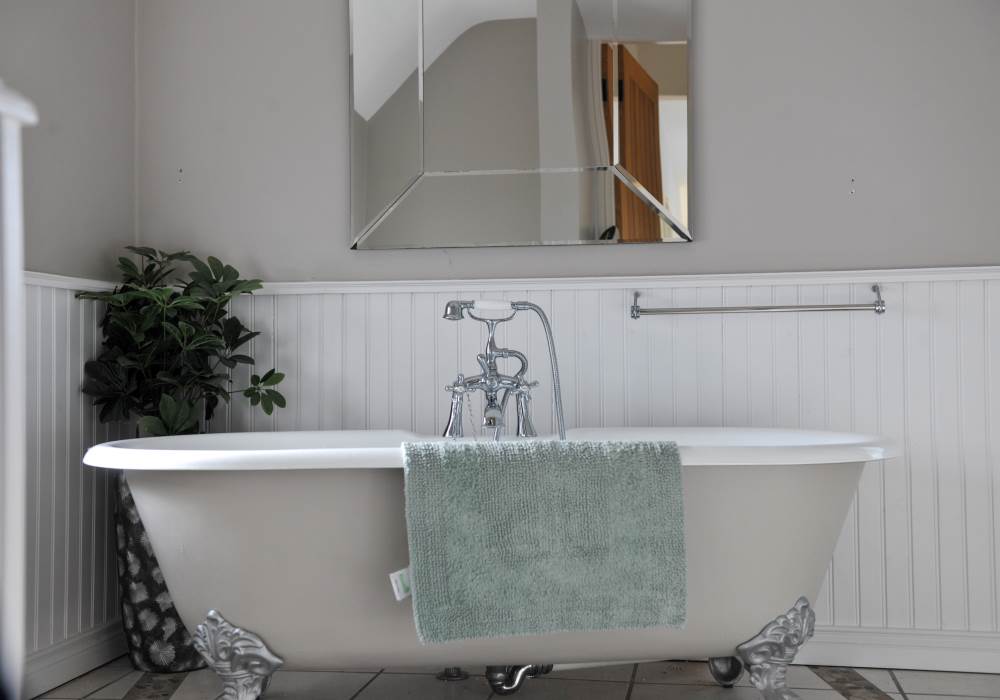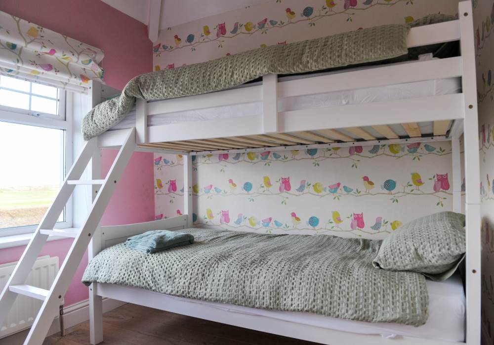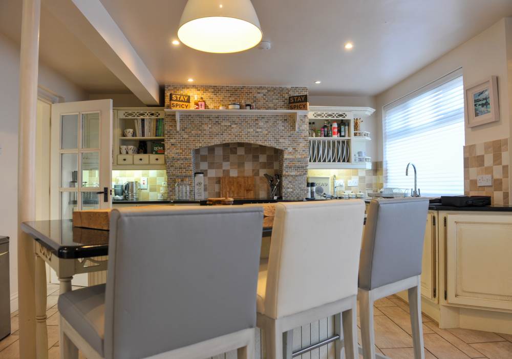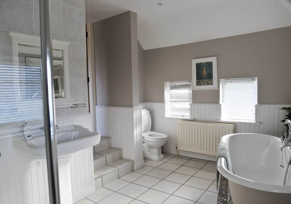 The property has 4 bedrooms - 2 x King, 1 x Double and 1 x twin. Sleeping 8 comfortably. There are three bathrooms in the property - one en-suite, one downstairs and one family bathroom upstairs which includes a bath.