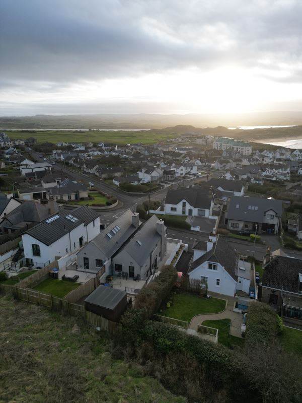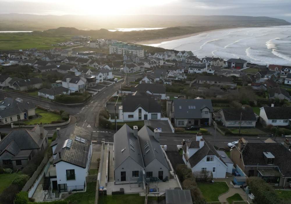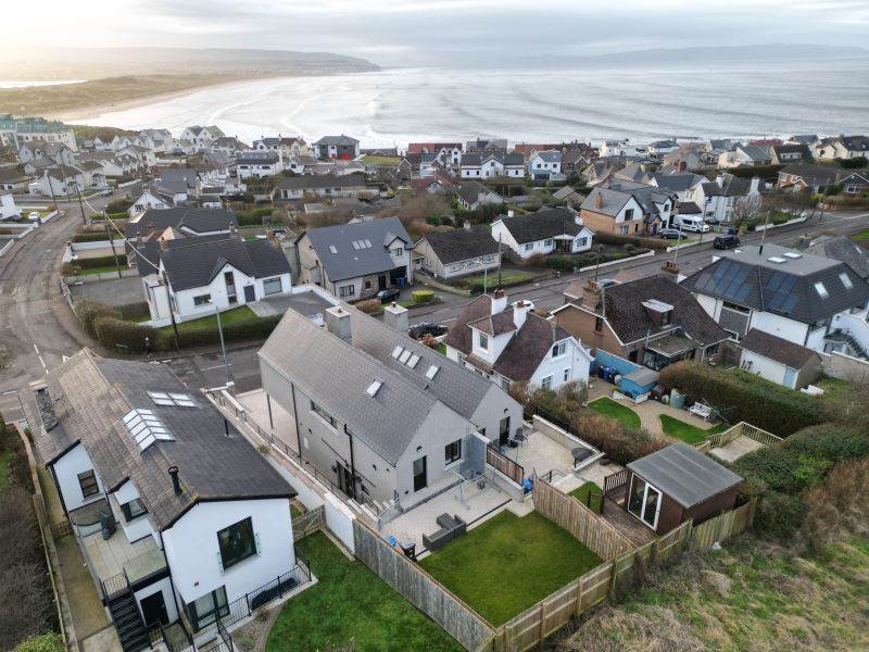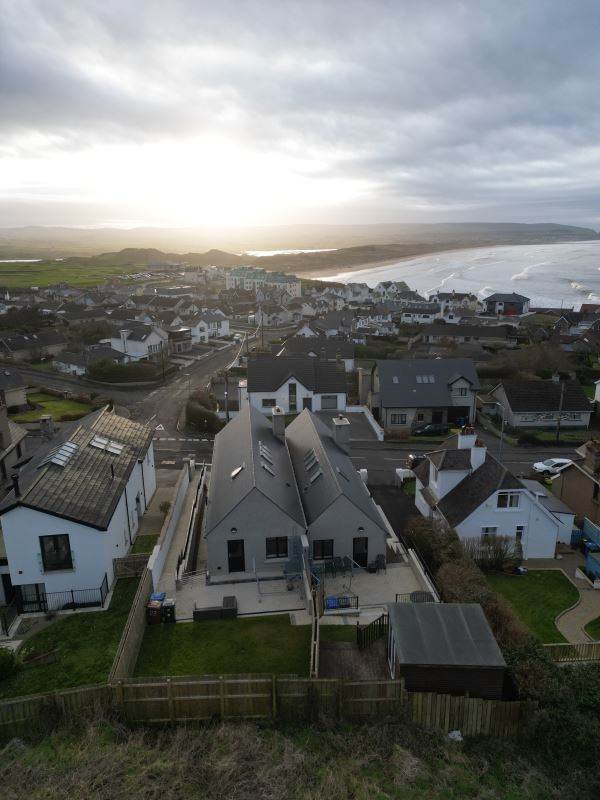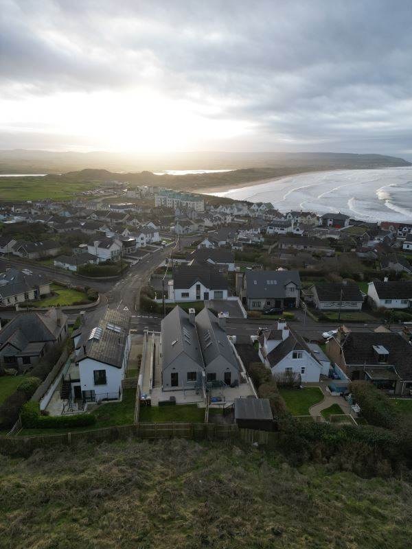 The Portstewart Prospect View is a newly designed modern new build home. Due to intelligent architecture the elevated position of this property gives guests a beautiful place that capitalises on the unique views of the ocean, beach and golf course - especially beautiful at sunset.
