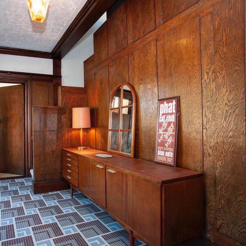 As you approach the house, you're greeted by a striking façade featuring geometric patterns, bold lines, and decorative elements typical of the Art Deco style along with a charming garden filled with lush greenery, flowers, and tropical trees.