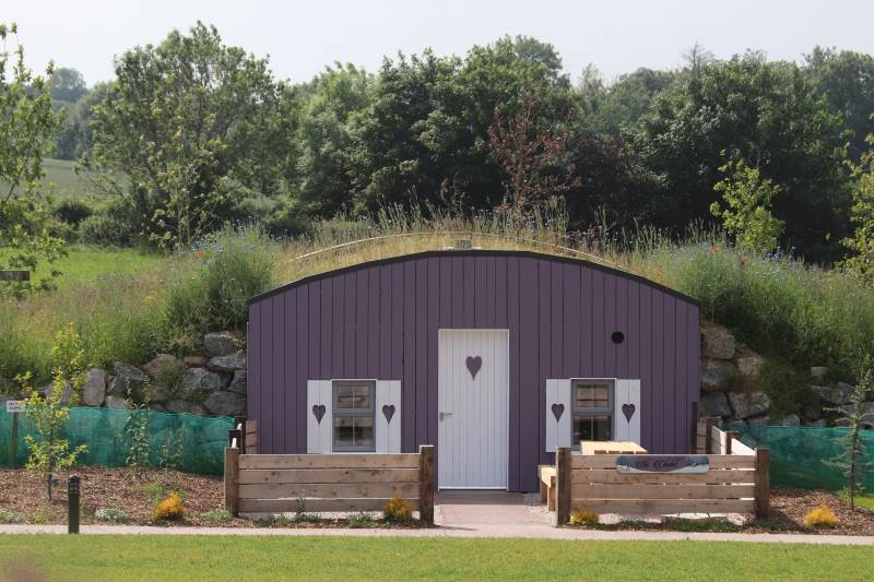 Built into the earth, with a curved ceiling inside and grass roof outside, the Ski Chalet House can sleep a family of up to six in comfort, with a private en suite bathroom, themed garden, picnic bench, BBQ, and chimnea (outdoor) stove for toasting marshmallows.