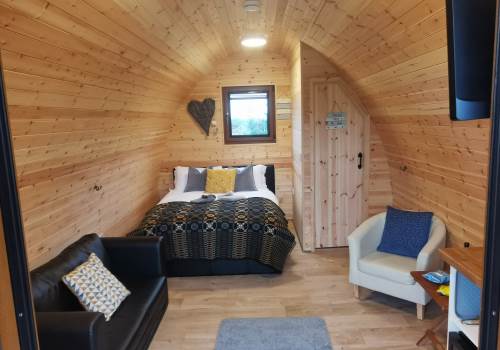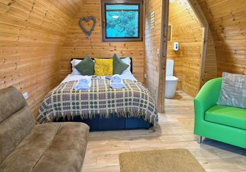 Porth Ysgo is a cosy pod for 2 people or family of 4.