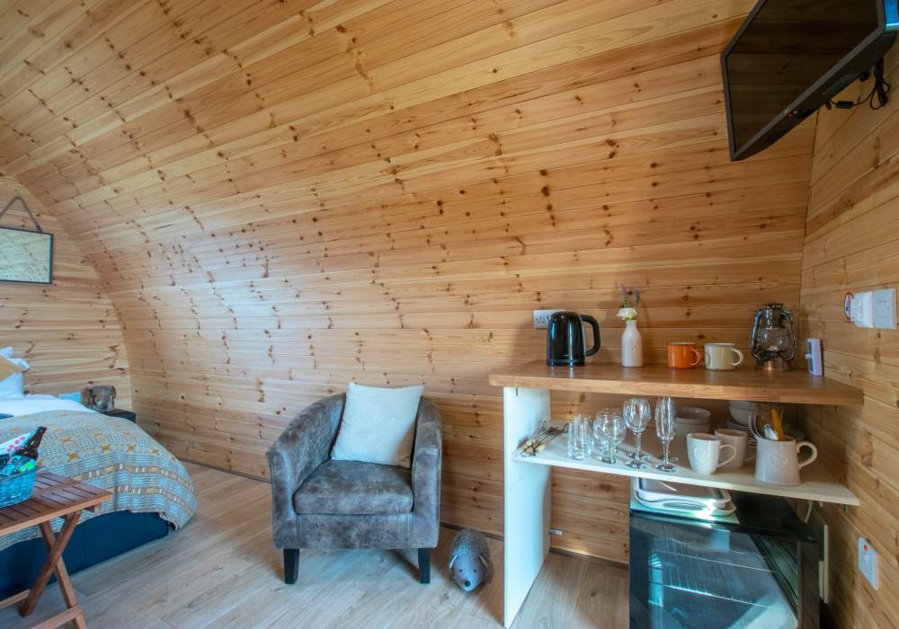 Escape to the beautiful Pen Llŷn and experience glamping at its best. Surrounded by spectacular coastline and scenic walking routes, our pods offer a peaceful retreat in nature. Enjoy woodfired pizza and a fully stocked bar on-site at Crasu, celebrating the best of local produce, along with access to a shared kitchen and high-quality shower and toilet facilities.